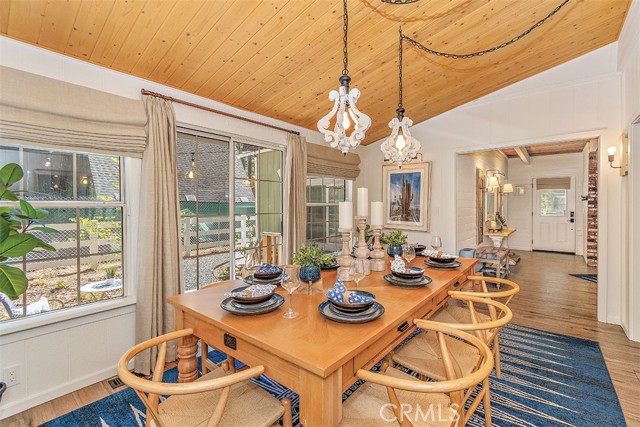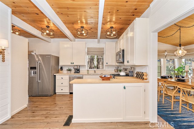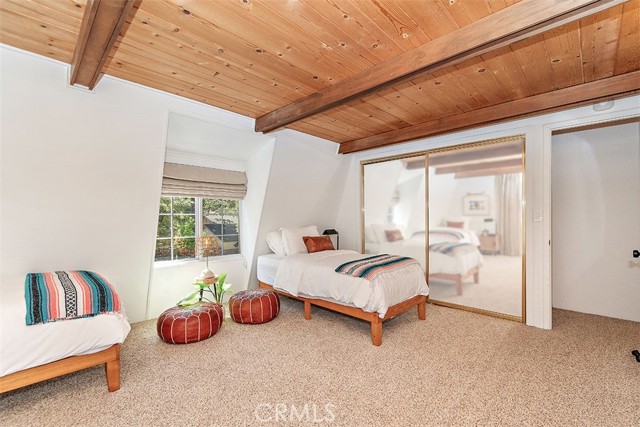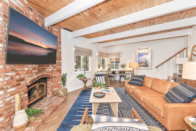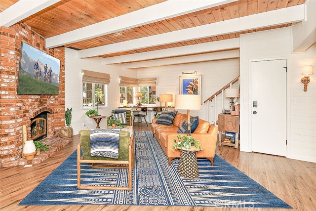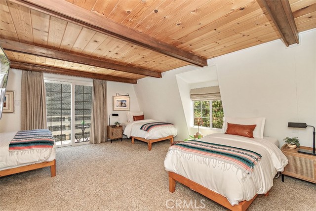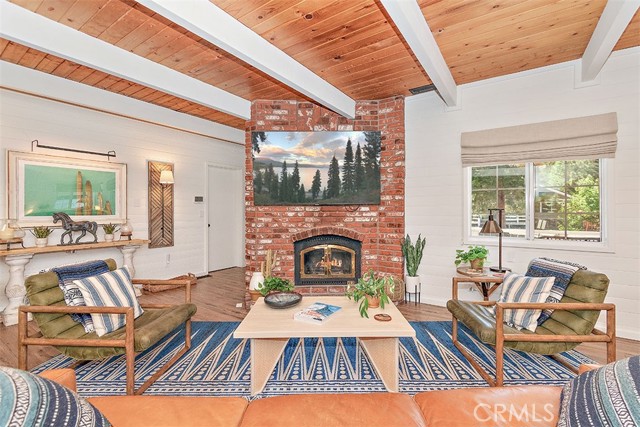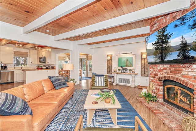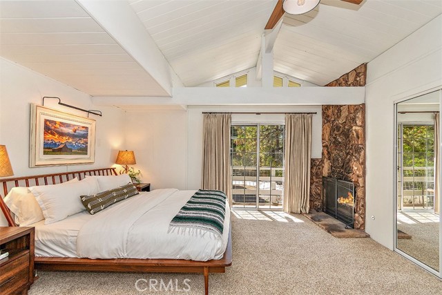 Mountain dreams do come true and this special home offers so many of the features buyers hope for with a phenomenal Summit Estates location just minutes to Snow Summit and Big Bear’s charming Village. Boasting 3 spacious bedrooms, 2 with their own balconies & 2 baths with state-of-the-art Toto smart toilet/bidets. Experience the inviting ambiance of this meticulously designed retreat. Architectural lighting beautifully illuminates the space, accentuating the wonderful decor & furnishings. With the Lutron Caseta Intelligent Lighting Control System, you can effortlessly adjust lighting throughout the home while conserving energy. Additionally, you'll find a convenient 50 amp EV charger & an upgraded 200 amp electrical service panel. This home seamlessly blends luxurious comfort & purposeful function. Remotely heat or cool the space with the WiFi-enabled Nest thermostat before you or guests arrive. Designed for efficiency, the AC system integrates both central air & mini-split systems. The centerpiece of the "Great Room" is the magnificent Xtrordinair wood-burning brick fireplace, creating an inviting atmosphere. The thoughtfully designed "work from home" area with 2 desks, nestled under lovely windows, serves as a multipurpose space further enhancing the room. The open kitchen showcases sleek stainless-steel appliances, chiseled-edge honed granite counters & a versatile butcher's block surface ideal for meal prep or serving. With the separate pantry & additional storage closet, it's a cook's dream for creating memorable meals! The dining room is spectacular with 2 stunning walls of glass welcoming the beauty of the outdoors in, flooding the space with natural light & offering access to the bbq patio & yard. Enhanced by open-beamed ceilings, ceiling fans, or direct balcony access, the generous size & distinctive features of the homes 3 bedrooms make each a sanctuary. The primary bedroom features a mini-split AC for warm summer days & a cozy wood-burning fireplace, amazing on winter nights! Outside, the 7,500 Sq Ft level lot offers EZ parking & cross-fenced areas- great for kids & pets. Low-maintenance artificial turf, means significant savings on water bills & time spent on lawn care, allowing more time to enjoy your Mtn Paradise. Additional storage in the shed & the attached garage which includes an epoxy floor & laundry area with washer & dryer. Furnishings/electronics pkg may be purchased separately. $27k in gross STR income Dec 2023-Apr 2024 (5 months)