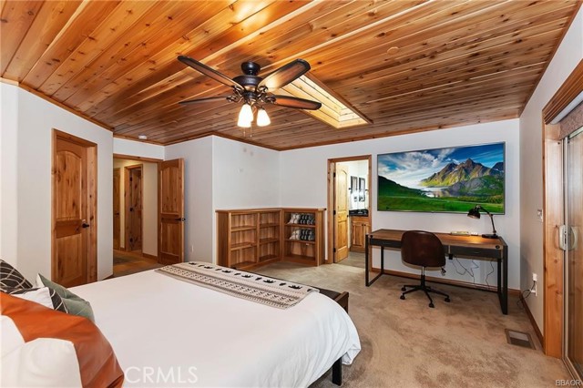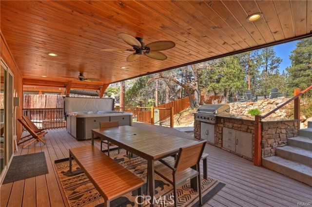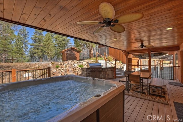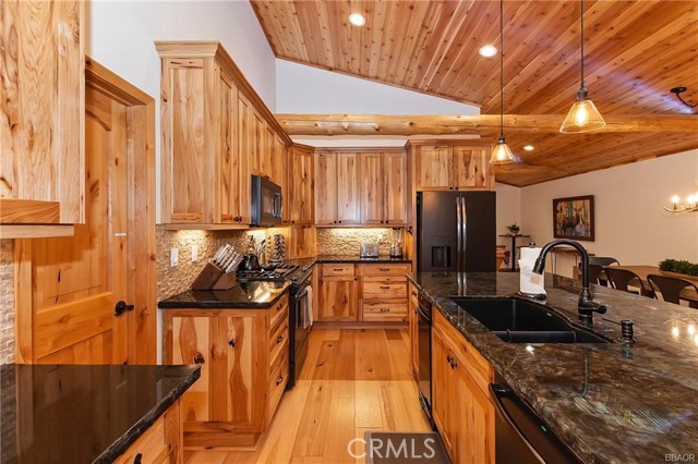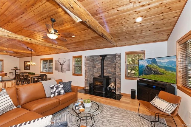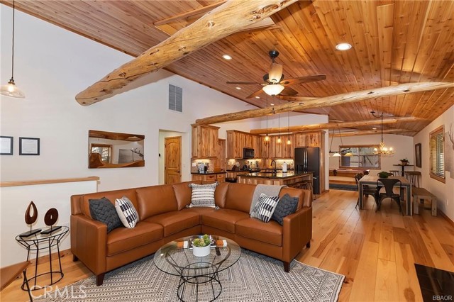 Your search is over. Nestled in the picturesque surroundings near Bear Mountain Ski Resort, Zoo, shopping, hiking trails, and golf course. Home was completed in 2019. Featuring 3 bedrooms 2 baths with an open concept floor plan. Boasts a spacious living area with remarkable cedar vaulted ceilings, Knotty Alder doors, Hardwood hickory floors, and free standing wood stove. Open concept layout seamlessly flows into the kitchen equipped with black stainless steel appliances, hickory cabinets, Granite countertops, and walk in pantry. In addition, it also features a game room with direct access to the spacious rear deck perfect for outdoor entertaining, with a BBQ, hot tub, wonderful water feature, and shed with power. Located in a sought after area, this cabin offers endless opportunities. It has been a very successful short term rental with amazing 5 star ratings on Airbnb. Since 2022, it has accumulated a gross of more than $193,000, averaging over $7,000 per month. With its combination of upscale features, breathtaking surroundings, and unbeatable entertainment options, this home near Bear Mountain is the ultimate destination for your next mountain getaway.