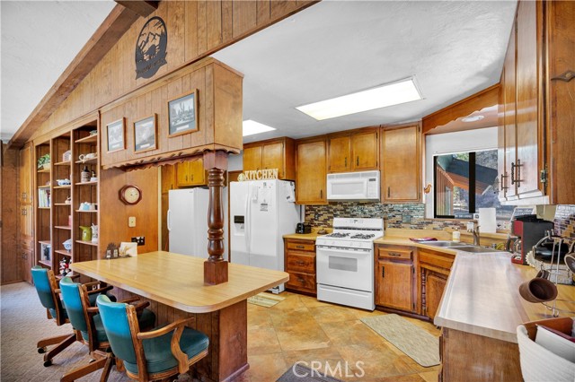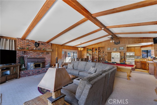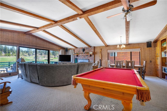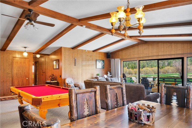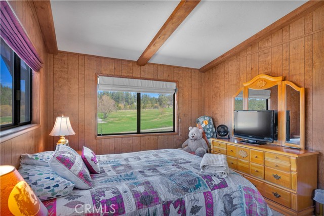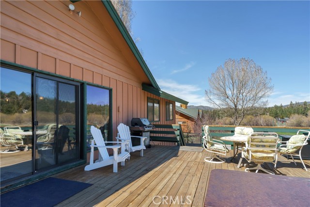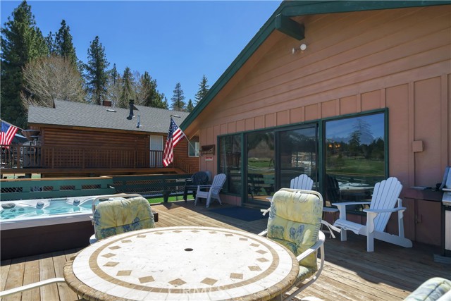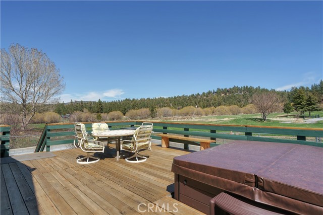 WELCOME TO MOUNTAIN ADVENTURES IN MOONRIDGE! Located across the street from the National Forest and backing to the golf course with huge, unobstructed views, this house is lovely inside and out. With its single story floor plan and ideal location . Walking distance to Bear Mountain Ski Resort, golf course, zoo and hiking/mountain biking trails. This home is bright and sunny - fantastic level floor plan with a large open space room. The living room has vaulted ceilings and a brick fireplace with efficient wood burning insert. Nice breakfast bar in the kitchen for family gatherings. Views of the golf course from 2 out of the 3 bedrooms as well as the living room. Large extended deck with spa and plenty of room for entertaining as well as watching the golfers. Two car garage and plenty of parking for family and friends. Come check it out, you will not be disappointed!!