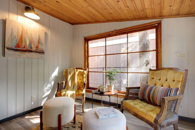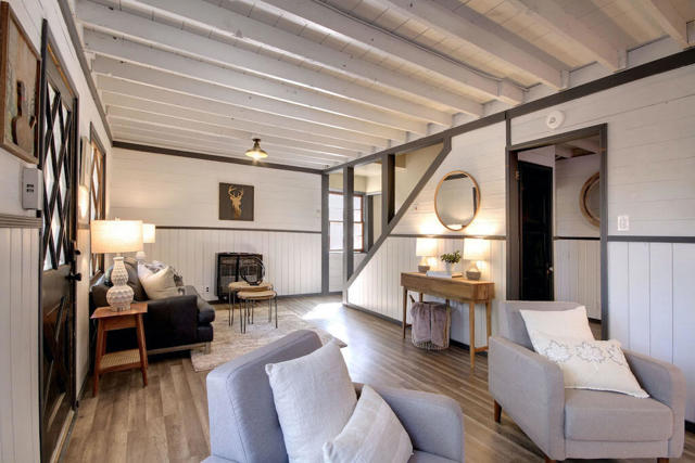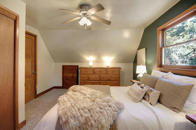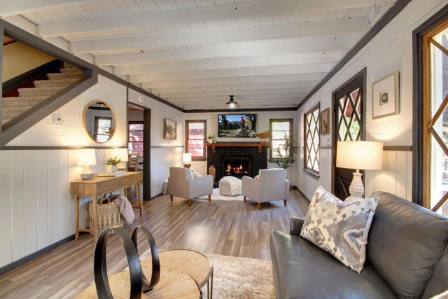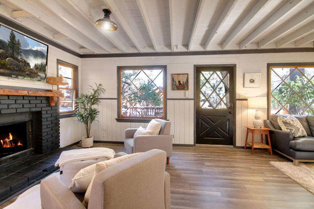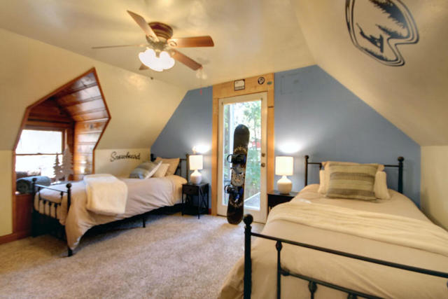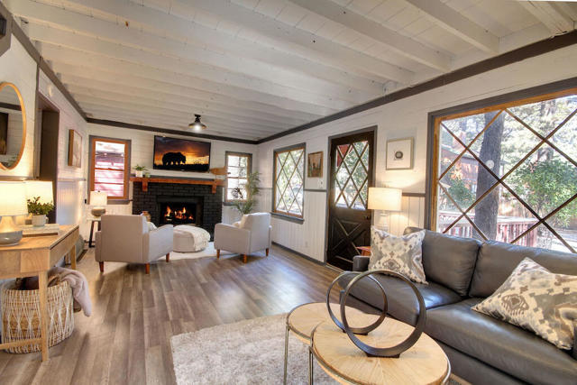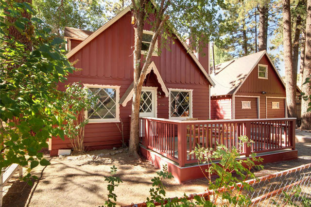 Freshly painted exterior and new carpet throughout, this charming cabin is so close to hiking trails and jeep trails that everyone will love it! The property has 3 bedrooms (downstairs bedroom is currently being used as a dining room). There are two additional bonus rooms: a bright sunroom area off the kitchen and a room above the garage boasting new carpet. The possibilities are endless for both areas. Property sits on a fully fenced 7,500 square foot lot. Large 2 car garage to bring all your toys and enjoy all the charm that Big Bear has to offer.