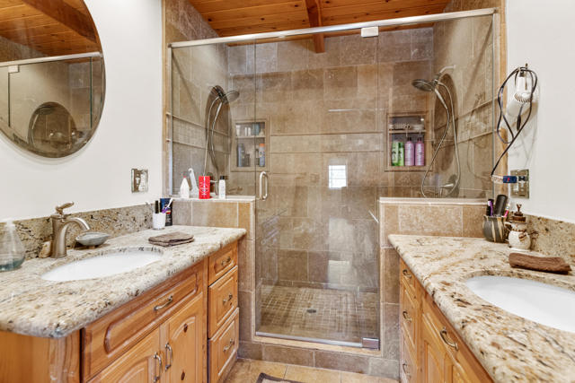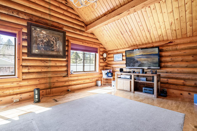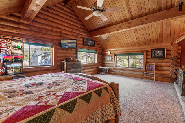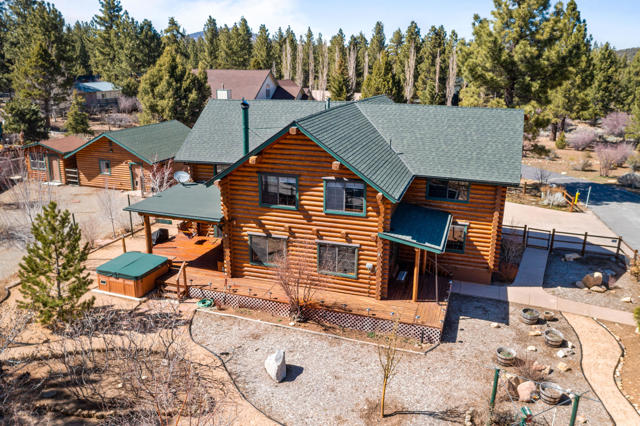 Here is your opportunity to own an authentic log construction home in the Wildhorse Estates area of Big Bear City. The home sits on a level, fenced and treed .38 acre lot. Enjoy the scenic mountain views while relaxing in the hot tub or BBQing on the deck. With 5 bedrooms, 3 bathrooms and over 3,100 sq.ft. of living space, there's plenty of room for the whole family to make lasting memories. Granite counters, hardwood flooring and dramatic vaulted beam ceilings are just a few features of this home. The main level has a spacious kitchen, dining and living room with a cozy fireplace as well as 2 bedrooms and full bath. Upstairs boasts a large family room with vaulted ceilings, master suite and 2 more guest bedrooms and bathroom. The 2 car detached garage is equipped with great storage and workshop potential. Adjacent to the garage is a detached bonus room that could be used for a guest bedroom or many other possibilities. There is plenty of parking for your toys (RV, boat, cars, etc). Easy access to walking and biking trails and the national forest. This home would be great for full time living or a vacation rental investment._____________________________________________________________