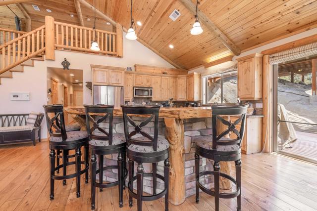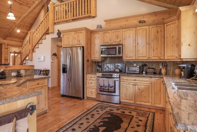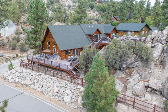 Outstanding Log Home Nestled Amongst Boulders in Eagle Mountain Estates Experience the epitome of rustic luxury living in this extraordinary log home, perfectly situated within the sought-after Eagle Mountain Estates area. Tucked amidst the natural beauty of the landscape and nestled amongst majestic boulders, this residence offers a harmonious blend of opulence and nature's splendor. Grand great room that boasts soaring ceilings adorned with exquisite log accents, exuding an air of timeless elegance. The open layout seamlessly connects the great room, kitchen, and dining area, creating a spacious hub for both relaxation and entertainment. Large windows throughout the home bathe the interiors in natural light, allowing you to savor the breathtaking outdoors from the comfort of your living space. Embrace the serene beauty of the surroundings as the boundaries between indoors and outdoors blur. Discover a loft area that offers a tranquil escape, that sits just outside of the spacious master bedroom. This versatile space leads to a spacious deck where you can unwind while taking in panoramic views of the estate and beyond. This home offers two inviting decks that extend your living space into the fresh mountain air. Relax and rejuvenate on the main deck, complete with a spa for ultimate relaxation. A second deck off the great room invites you to dine al fresco or simply bask in the natural beauty surrounding you. This residence offers a lifestyle of luxury and serenity.