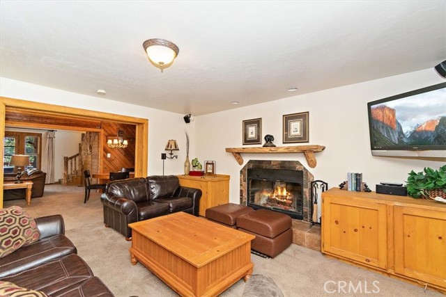 Huge 3,745 sqft rustic mountain home. This property is an entertainer’s dream! Set on a ½+ acre corner lot w/parking for 8 cars, a boat, or RV. Massive native rock floor-to-ceiling fireplace in great room, + 2nd living room w/fireplace & gaming tables. Extensively remodeled w/architectural grade lighting, knotty pine finishes, quartz counters in remodeled kitchen w/stainless steel appliances, island prep sink, & 2 cooktops. Loft, 3 master suites, 7 total beds & baths, + multiple decks provide room for many guests/family members. Energy efficient dual-zoned forced air units, Milguard-style dual-pane windows & sliders, EV charging station, 30 year composition roof installed in 2017 & new HE washer+dryer. A short drive to ski slopes, lake, & Village. Has been an established vacation rental but could make a good residence or second home as well. Conveniently located off scenic HWY 38. Seller has completed approximately $30k in exterior siding, scraping, caulking, stain and paint