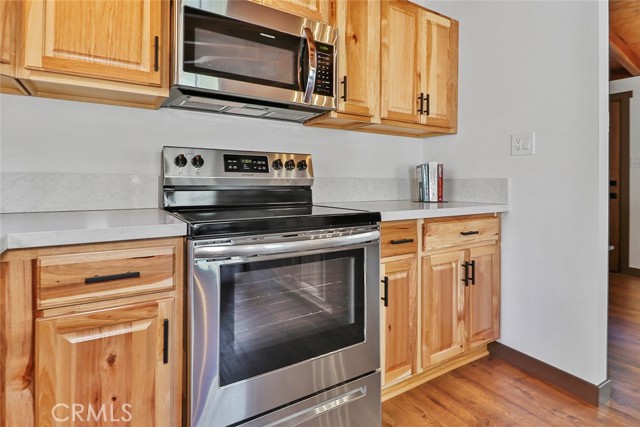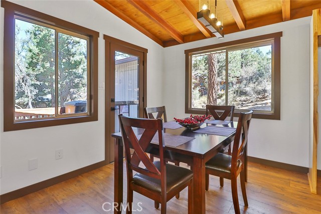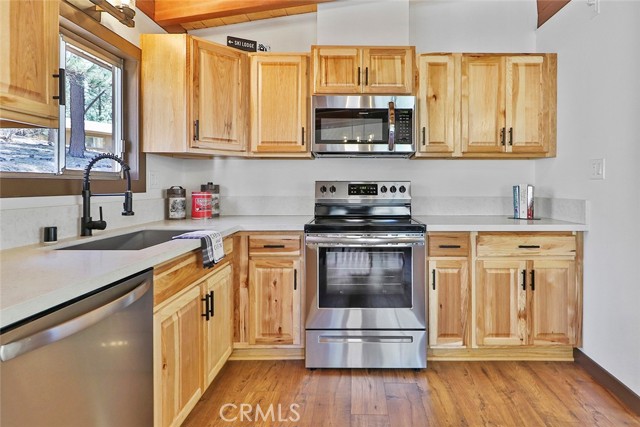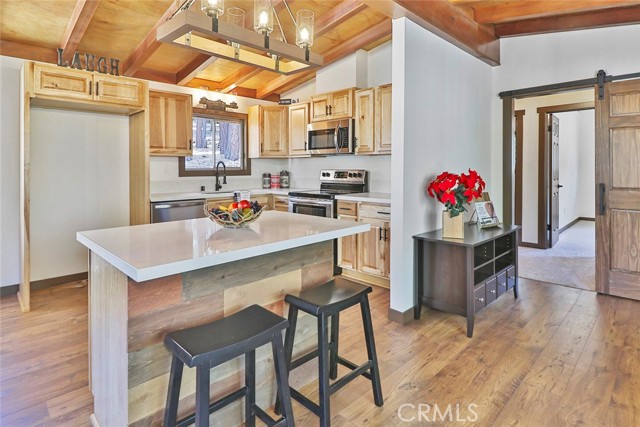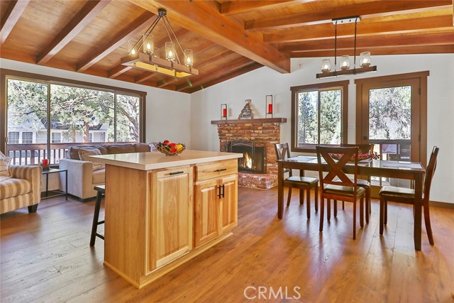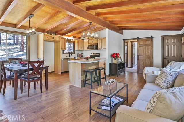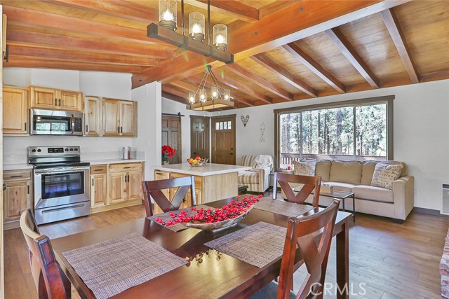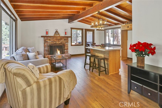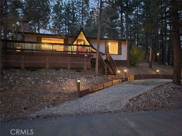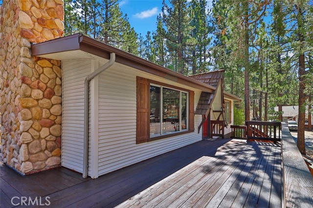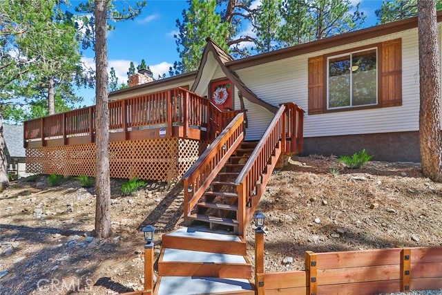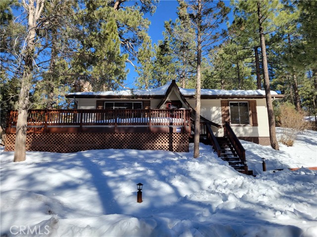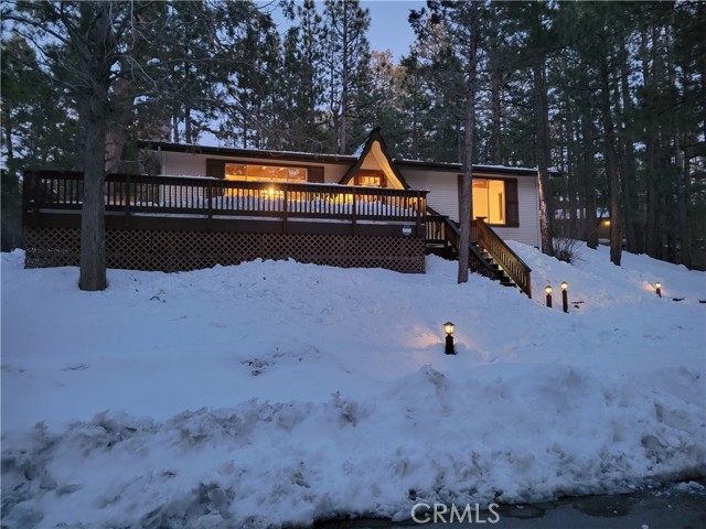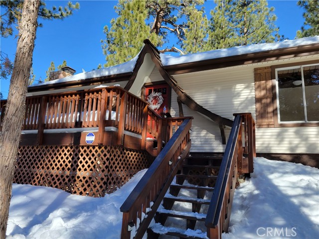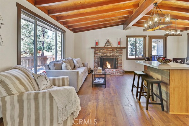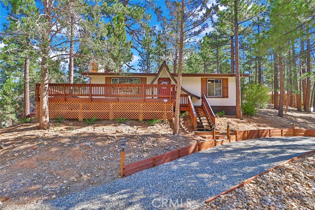 Welcome Home to a beautiful and extensively remodeled cabin that sits on a corner lot with circular drive in the mountain community of Big Bear. Looking for that perfect place to get away from your fast-paced city life or daily grind? Whether you are an outdoor enthusiast or just want to relax, Big Bear has it all. Winter activities include skiing, snowboarding, and tubing. In the summer months, you can enjoy the clean mountain air while hiking, mountain biking, boating on the lake or shopping in the village. The new open concept kitchen features hickory cabinets, quartz counters, stainless steel appliances, and a center island with additional seating. Other upgrades include paint, flooring, doors, hardware, lighting, plus newer plumbing. The home has 2 bedrooms and 1 bathroom with a barndoor feature that separates the living space from the sleeping area. The large outside deck is nice to enjoy your morning coffee or some hot cocoa or a BBQ after a long day at the slopes or on the lake. This lovely cabin getaway may be the home you have been dreaming of - A getaway to where the sky seems to be bluer than normal, people are friendly, and the whisper of the pines are relaxing - Centrally located to the lake, shopping, airport, and mountain activities - Here is your opportunity to get yourself a little piece of Big Bear and start creating lifelong memories!