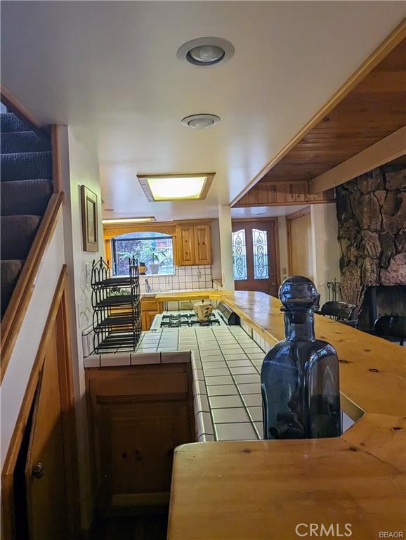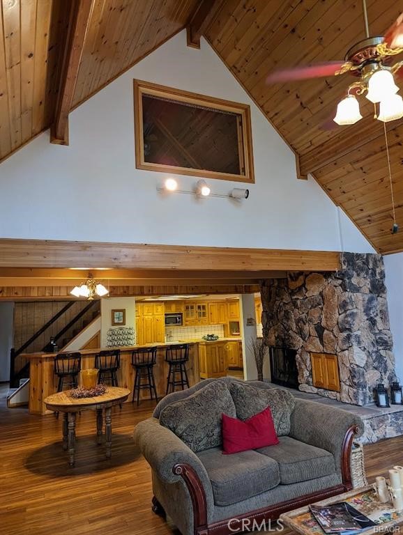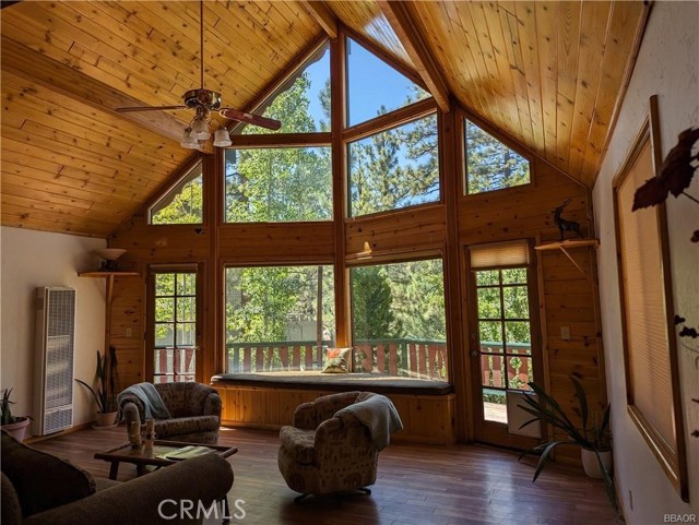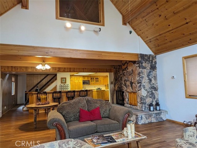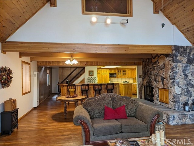 Lets count Things to love about this property: 1) A Floorplan like no other 2) T&G vaulted cathedral ceilings 3) A Wall of Windows on the Prow Front 4) The View of all the foliage 5) The Open Great Room 6) Location Location Location 7) Knotty Pine kitchen with custom cabinets 8) U shaped Drive, lots of parking and access to rear yard 9) Full Mountain ambiance yet easy access 10) A two-sided wrapping Deck 11) a gigantic Pear Tree and mature landscape 12) shed with electric 13) 2 full baths. 14) Last but not least, this is a fun property with a great vibe!