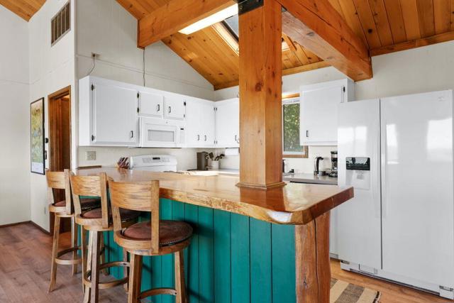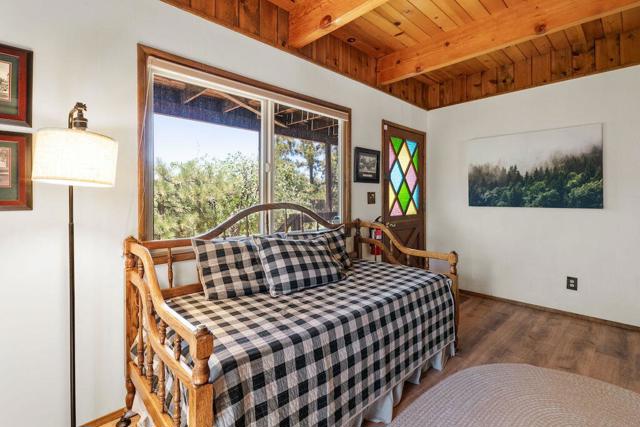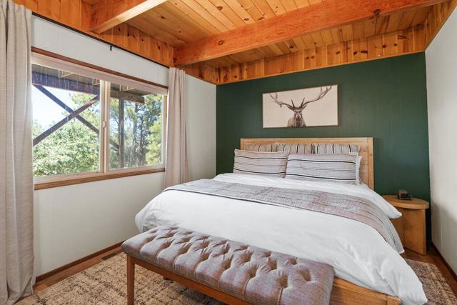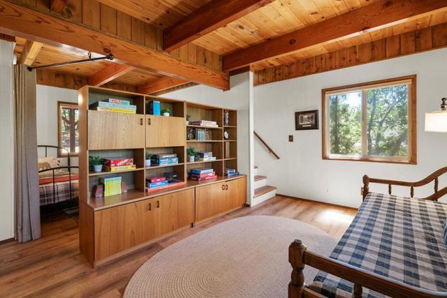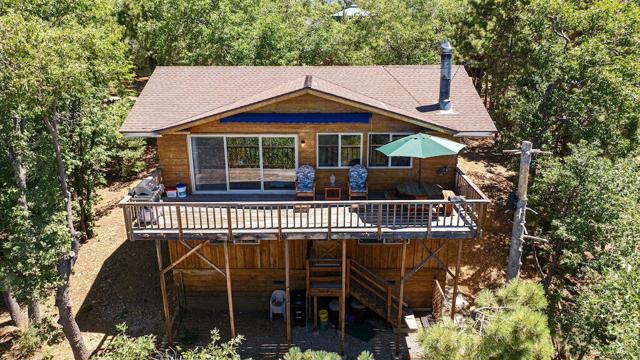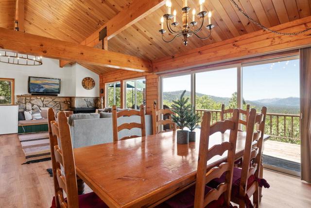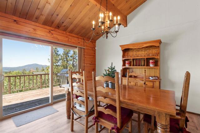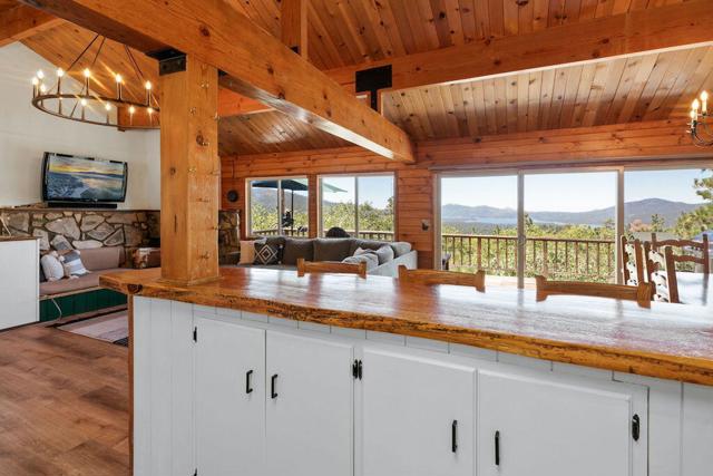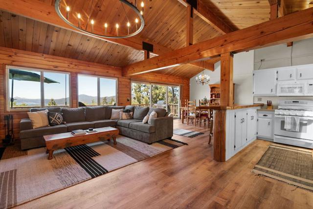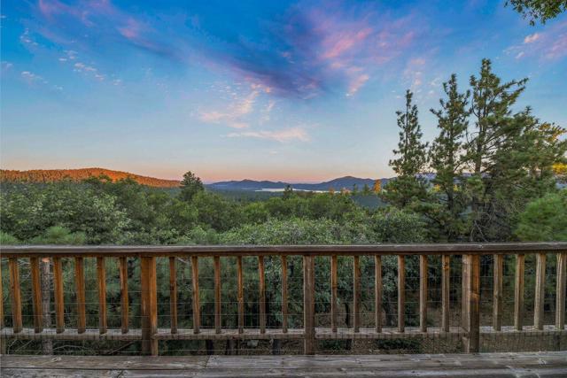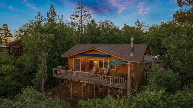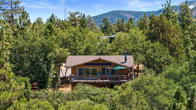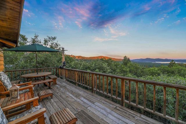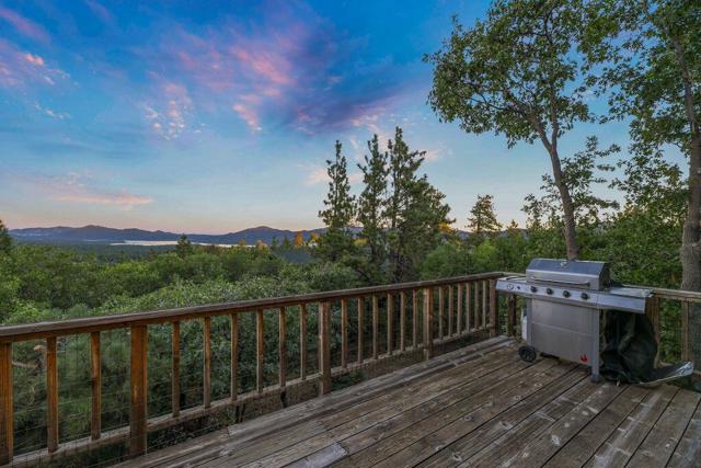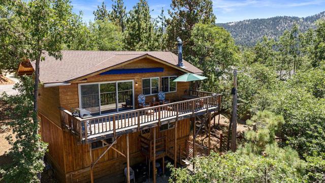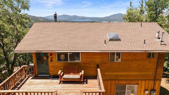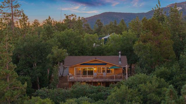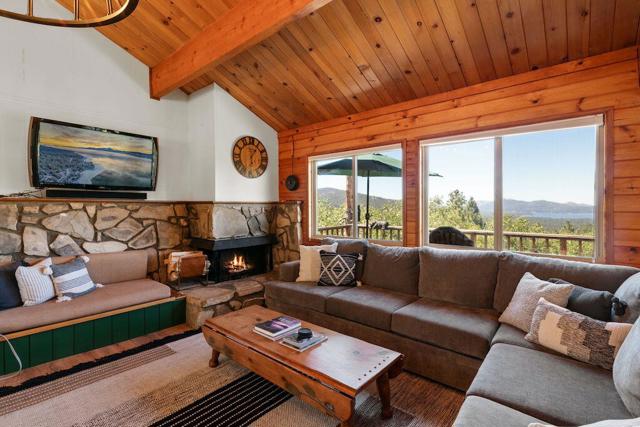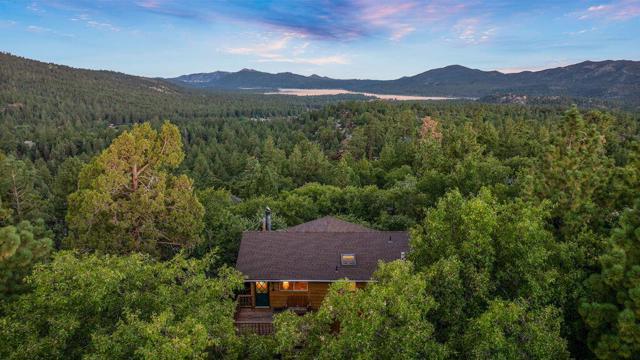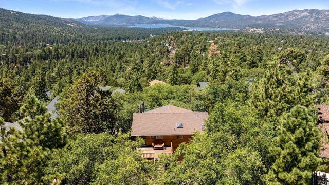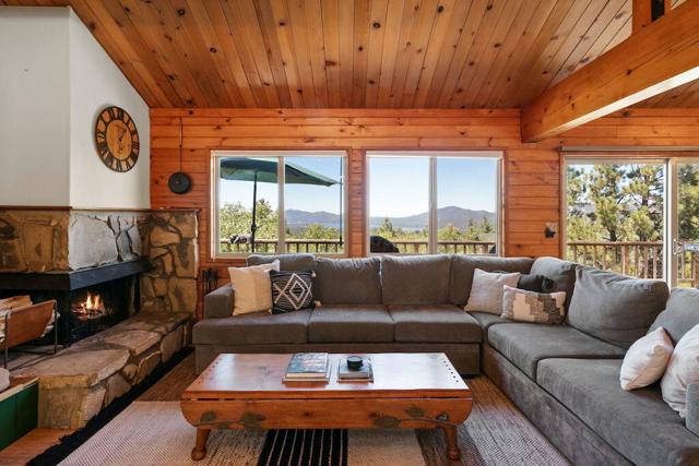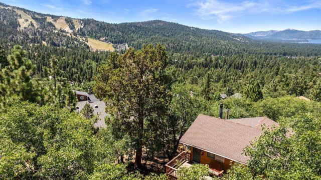 Top of the world, located on one of the highest residential lots in Big Bear. Spectacular Big Bear Lake and ski slope views from the living room and rear deck. This mountain home is located on a desirable Cul-de-sac in upper Moonridge. This home checks all of the boxes. Abundant sunlight and incredible sunsets. Vaulted open beam ceilings and knotty pine ceilings upstairs in the living room, and dining area. Wood-burning fireplace. A skylight above the kitchen and breakfast bar. 1/2 bath powder room on the upper floor. Downstairs are 2 spacious bedrooms, a full bath, and 2 additional areas for additional sleep and entertainment. Newer vinyl dual pane windows. Dog Run below the rear deck. Level parking. Just a short distance to Big Bear Lake, Snow Summit and Bear Mountain, the Village, Golf Course, Big Bear Zoo, National Forest, hiking and biking. This home would make a great full-time home, second home, or vacation rental.