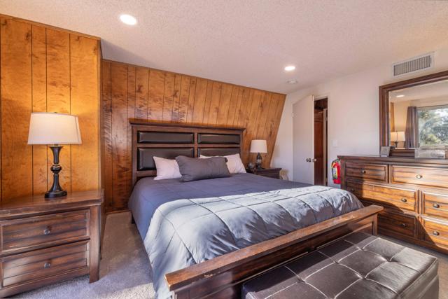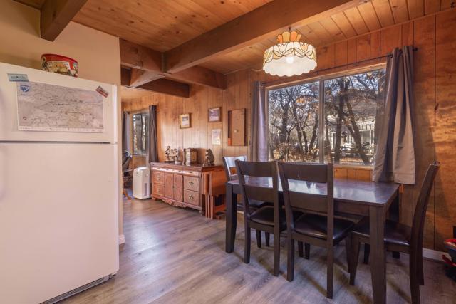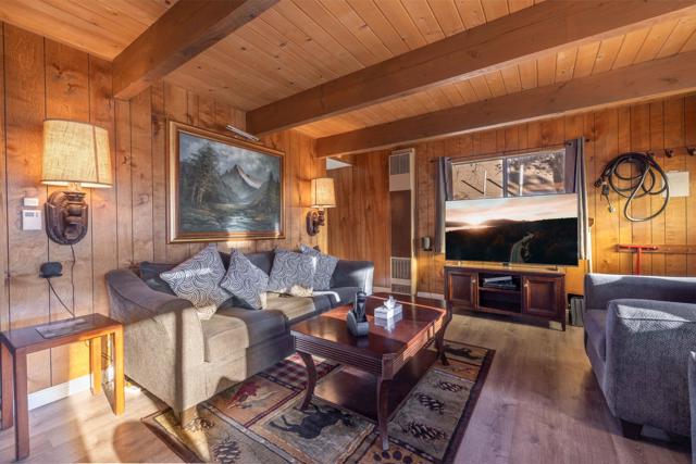 Woodsy retreat in Moonridge: You'll enjoy the scenic alpine ambiance this secluded Upper-Moonridge location provides. Easy access with great parking and you'll appreciate the mountain views from decks and balconies. Wood-beamed ceilings, cozy fireplace, updated flooring, and functional floorplan with two spacious bedrooms and 1/2 bath upstairs. Living, kitchen, dining, and additional full-bath downstairs. Your mountain cabin awaits! Comes furnished and ready to enjoy. Have a look and fall in love.