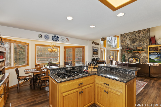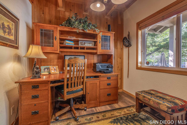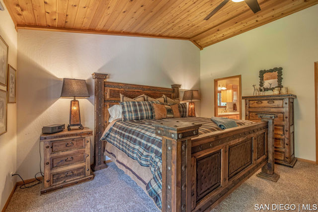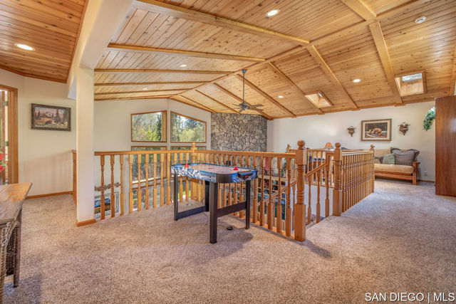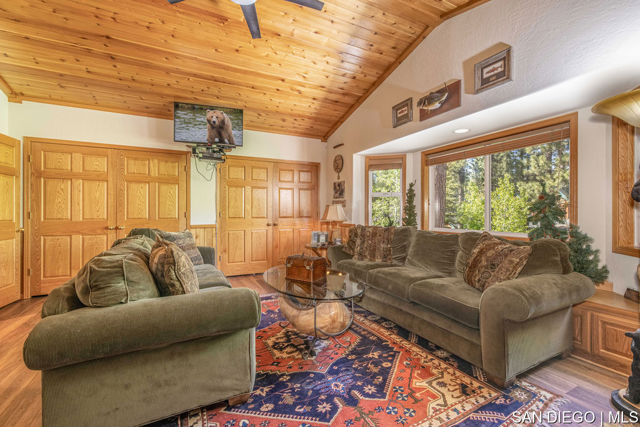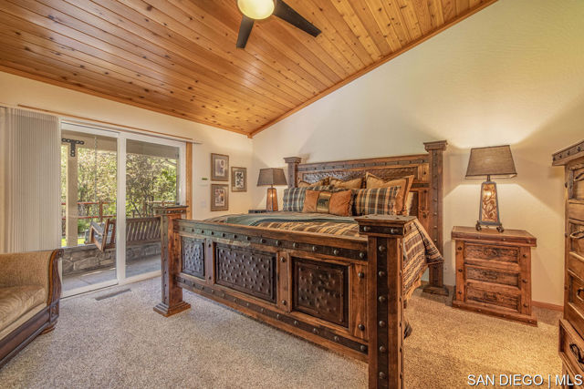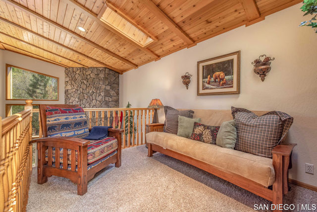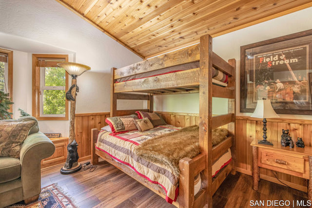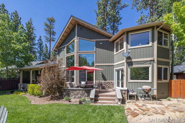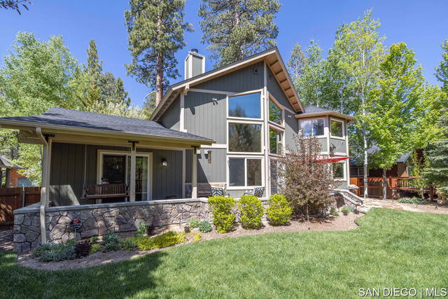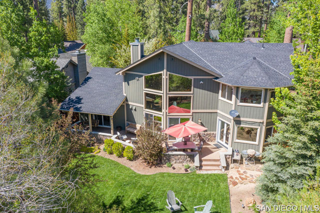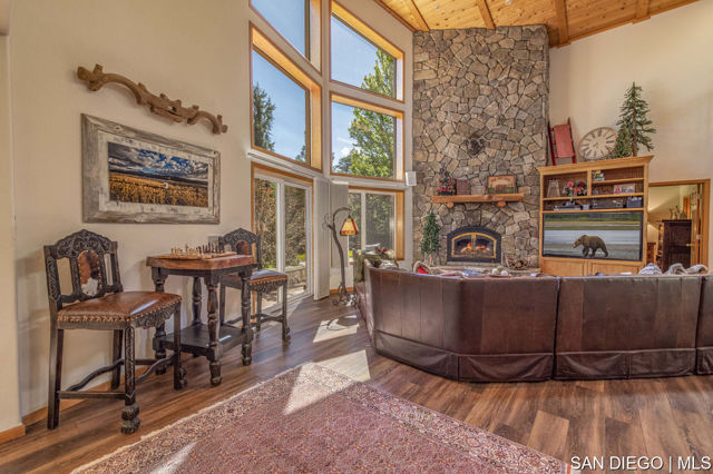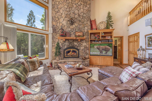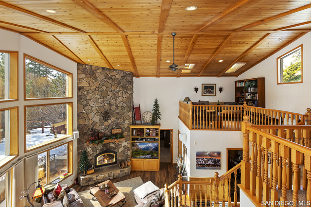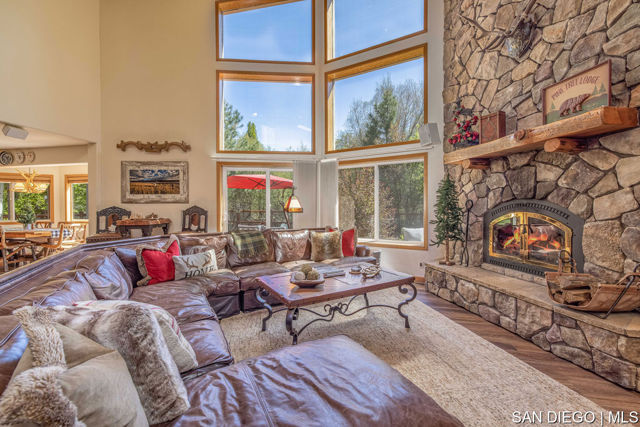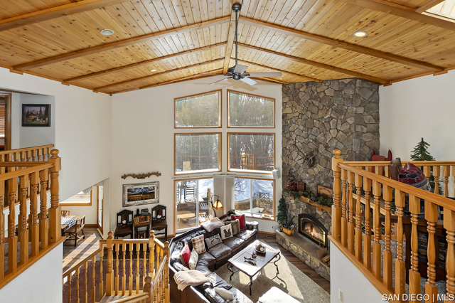 PREMIER EAGLE POINT ESTATES LOCATION/NEIGHBORHOOD WITH COMMUNITY MARINA, PARK, AND TENNIS COURT ADJACENT TO A NATURAL STREAM BED...Wonderful mountain lodge feel, custom designed and built by Bob Dixon, with cathedral cedar ceiling and accented walls, massive floor-to-ceiling stone fireplace, and oversized windows bringing the light in overlooking the manicured grounds ~ Chef's kitchen with granite counters, stainless steel appliances, tons of cabinetry, work space, bar seating, pantry and adjacent dining area ~ 4 bedrooms (4th bed could be a game room) with primary suite on the main floor, an office and another suite upstairs along with a loft ~ Spacious laundry room ~ Furnishings negotiable ~ Boat slip number 75 included at marina ~ Close proximity to Snow Summit Ski Resort and conveniently located to shopping and lake ~ No attention to detail left out in this beautiful home!