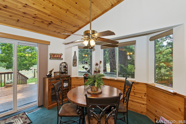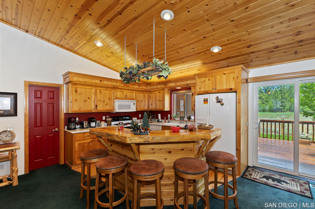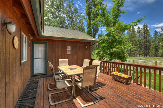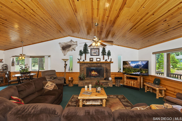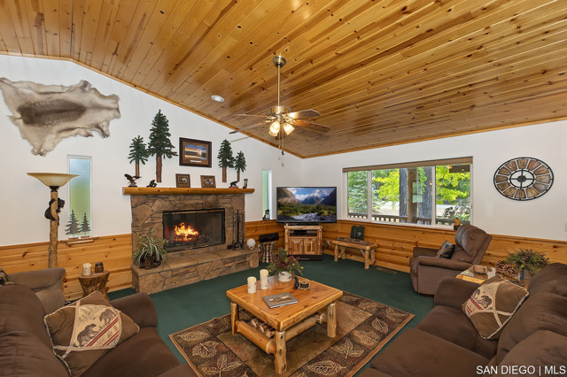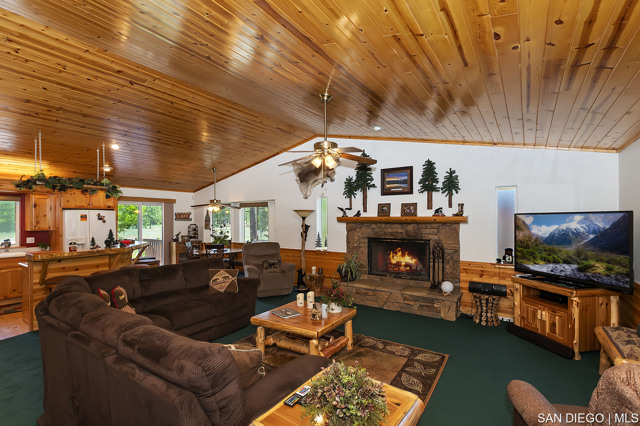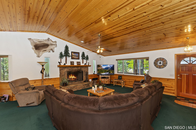 Nestled in the heart of desirable Eagle Point this exciting property offers an array of amenities including the outstanding location. Log style home backs to a Nature Preserve ensuring your serenity and a boundless treed view. Landscaped low maintenance front yard and fully fenced backyard with a side gate entry for storing your boat or trailer. The grounds are gorgeous! Covered front porch and spacious back deck plus a lawn area for family enjoyment & entertainment. Great room design floor plan incorporates the kitchen with a walk-in pantry, dining area with counter bar seating and a dining table with a spacious living room boasting a gorgeous rock fireplace. Beautiful T&G pine vaulted ceiling sets the tone for the spacious living room with a beautiful rock fireplace. Master suite has access to back deck. Two guest bedrooms with a large full bathroom for guests, laundry room with entry leading into the two car garage stores a tankless hot water heater and lots of room for your toys and vehicles. Pride of ownership describes this immaculate property which has only been used as a primary and second home, however it is located is in a short-term rental friendly neighborhood. Ideally located just moments from Big Bear's main attractions including both ski resorts, shopping, dining and lake access. Property will be sold furnished at the right negotiable price.