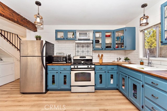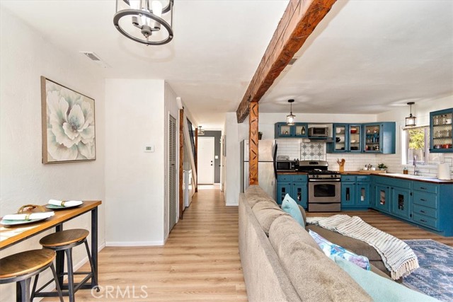 Welcome to 2138 7th Lane! Located on the outskirts of Big Bear City on a paved road (located 10 minutes from downtown) This darling home is ready for a full time resident, a vacation home, or vacation rental. Upon entry, you are greeted with an open living layout. Cozy living space with a fireplace and exposed beam! The kitchen has a butcher block countertop, stainless steel appliances, a custom backsplash, and unique open cabinetry. This home has three great sized bedrooms and two full bathrooms. The backyard is the perfect place to sit back, relax and enjoy the peacefulness around you. One of the first neighborhoods off Highway 38! Close to hiking, riding trails, and Erwin Lake Park! This home is a short drive to the lake, the village, the Alpine zoo, ski resorts, and more! Surrounded by lots of wildlife in a very peaceful neighborhood.