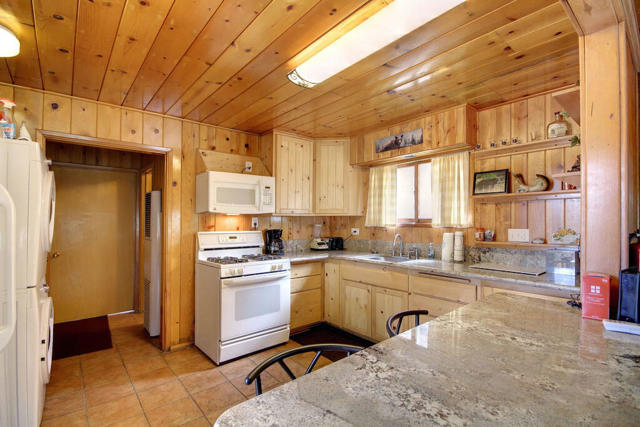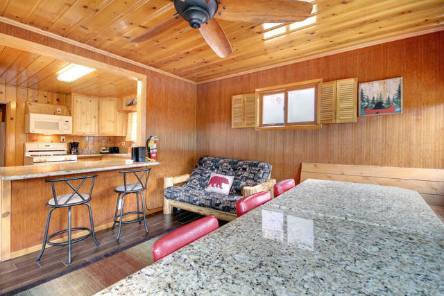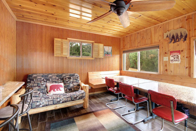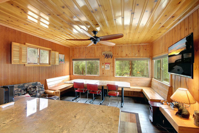Opportunity knocks! Two for the price of one. Located across the street from the National Forest with hiking and biking trails. Great Views! The front cabin has been used in the past as a vacation rental. The back cabin was converted by the sellers into a second unit, it was permitted as a garage and storage only. (not living space, no permits on the back unit.) Front unit has Knotty pine interior with wood look tile flooring. Indoor laundry in the main house. Back unit has a kitchenette, bathroom, bedroom and dining area.