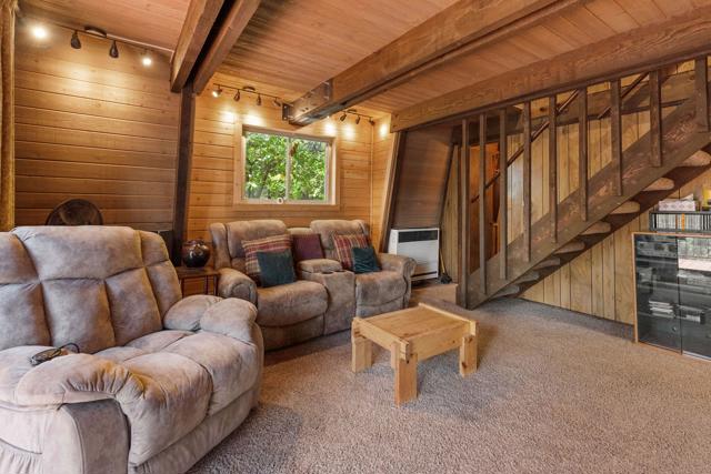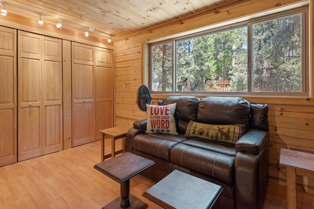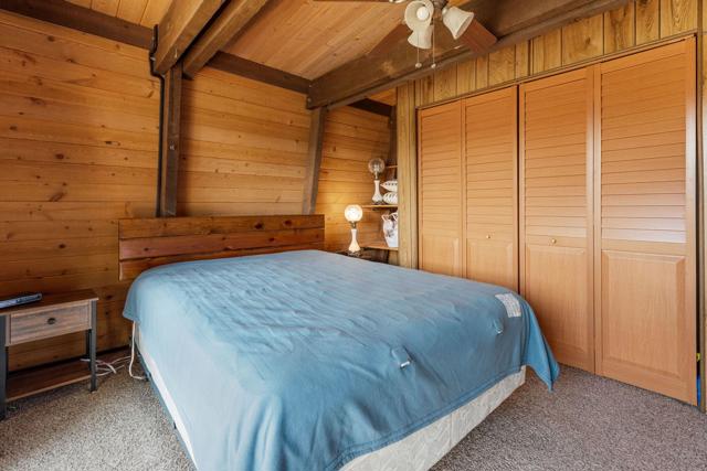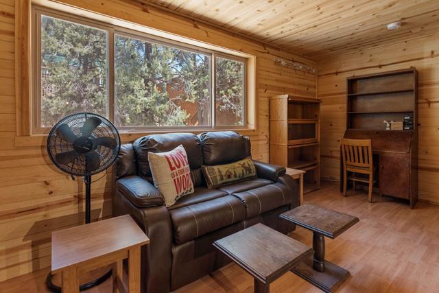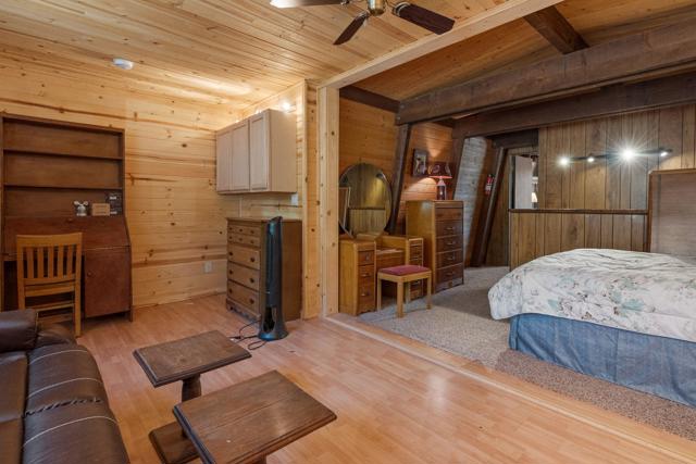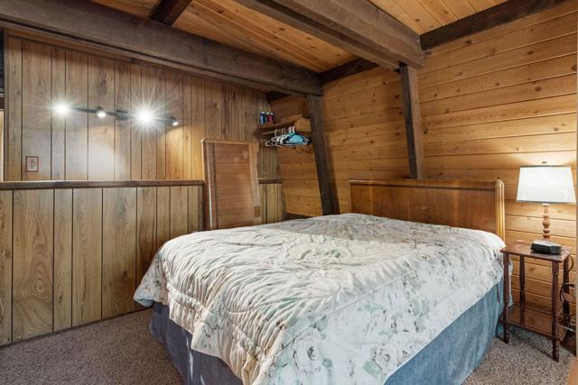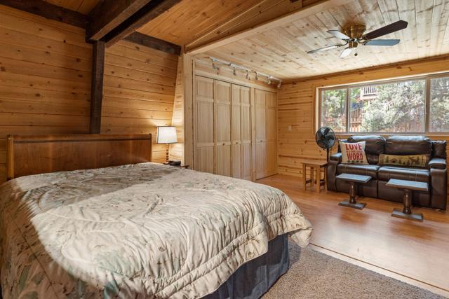 Super Clean & Ready to Go... 3-Bed, 2-Bath, 1234SQFT. Sitting on the North Shore side of Big Bear in the ''Peter Pan'' Neighborhood of Big Bear City. Classic Gambrel Style construction with exposed wood beams, Open Living room into the Kitchen, Large Sliding Glass Door leading to ''Party Deck'' facing South towards Bear MTN & Snow Summit Ski Resorts. 2-Large Bedrooms located upstairs 1 with its own private Balcony, 1-bedroom on the main floor. Fenced back yard with storage Shed. Plenty of parking.