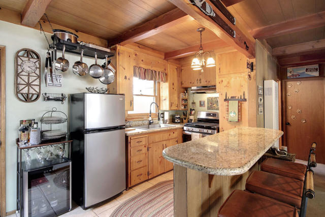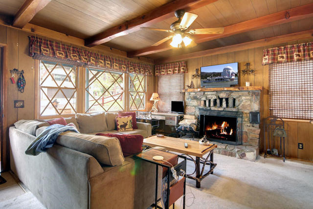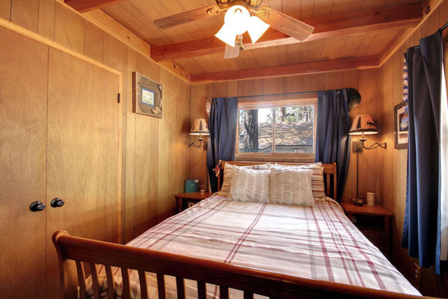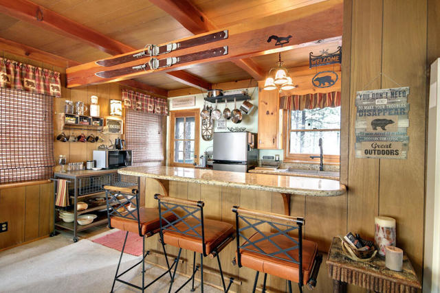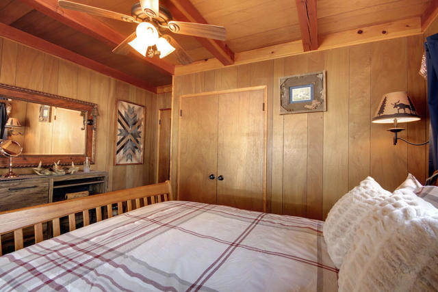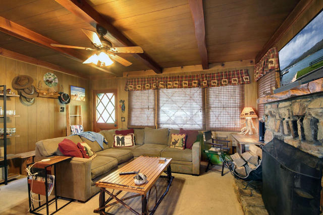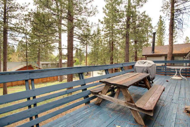You'll love the central location in Big Bear Lake just a short distance from The Lake, Snow Summit, Meadow Park (fireworks), the Village, Grocery Stores, Restaurants, etc. This single-level Sierra-style home sits on a large 7095 sq ft lot. Enjoy the mountain air on the back deck. Fenced back yard for the pets etc. Covered front porch. Wood-burning fireplace in the living room. Ample parking for multiple cars. The current owner has upgraded the wall heater and water heater. Furnishings are negotiable per the seller's inventory.
