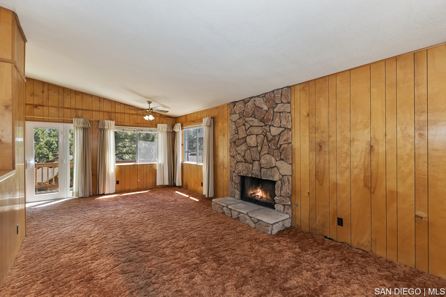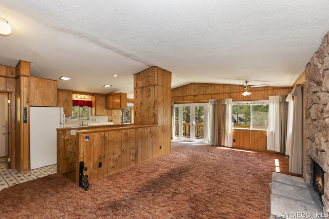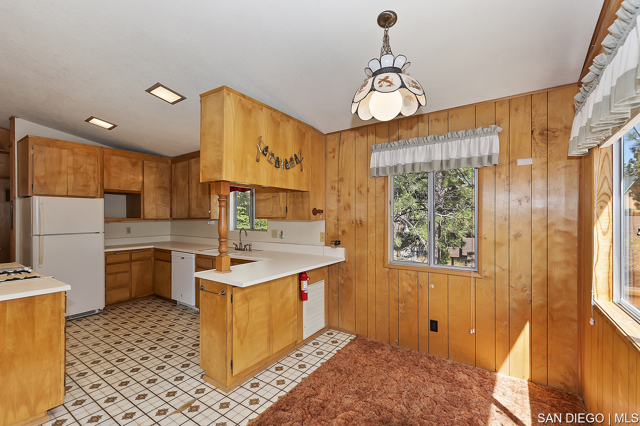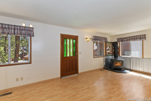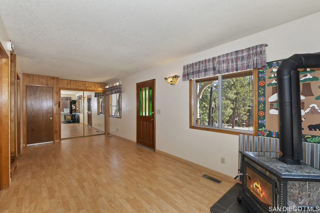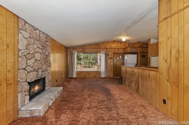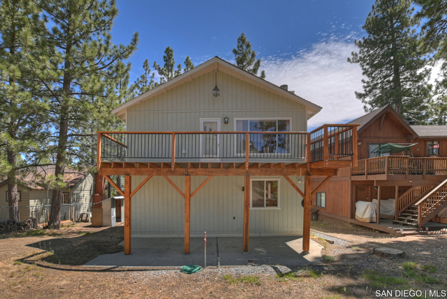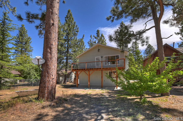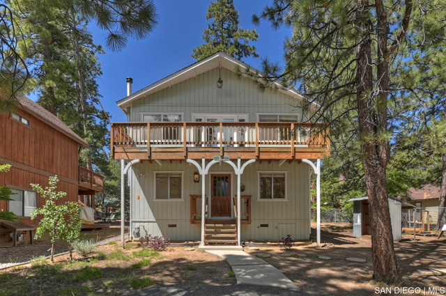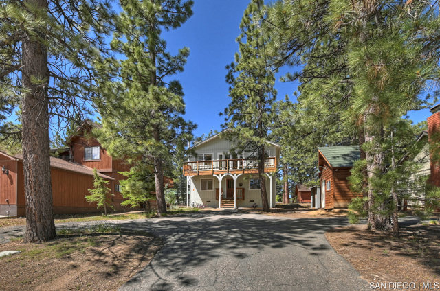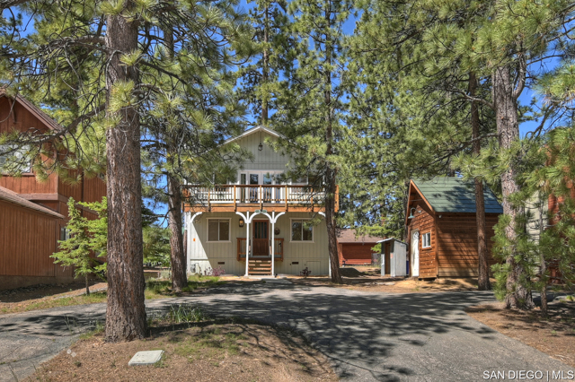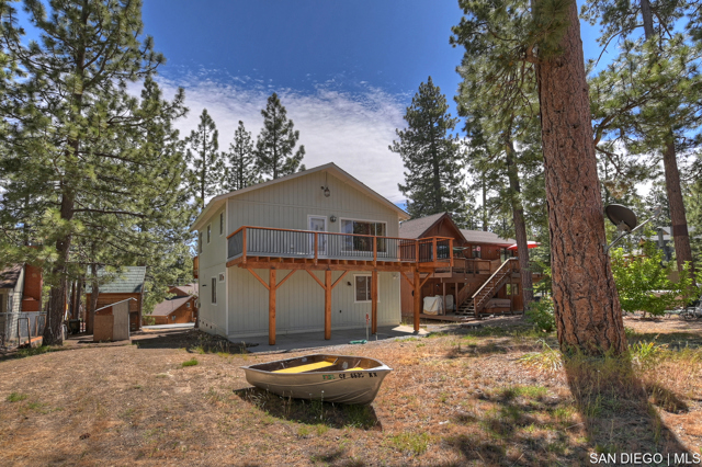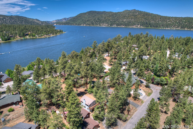 WELCOME TO THIS FANTASTIC GILNER POINT LOCATION JUST STEPS AWAY FROM THE LAKE AND PUBLIC LAKE ACCESS POINT ~ This charming chalet features a reverse floor plan with two spacious bedrooms on the lower level with deep closets, complemented by a jack-n-jill bathroom ~ You'll also find a versatile bonus/entry room complete with freestanding wood-burning stove, adding warmth & character to the space ~ Ascending to the upper level, you'll be greeted by an inviting open great room with vaulted ceilings & a cozy wood-burning fireplace ~ The kitchen is open to the living room, equipped with a fridge, stove, & dishwasher ~ For added convenience, a stackable washer/dryer is also included ~ Indulge in the beauty of the outdoors on the recently installed Trex decking, spanning both the front & back decks, offering a great spot to bask in the morning/afternoon sun ~ Freshly painted inside and out ~ Newer furnace ~ Circular driveway ~ Street and alley access allows for easy access to both the front and rear of the property ~ Storage shed ~ With its central location & close proximity to Big Bear Lake, undertaking a few renovations will undoubtedly transform this property into something truly special.