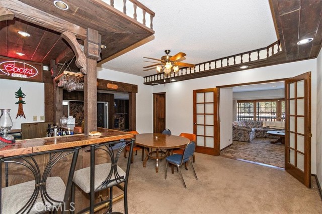 InteriorFeatures Information | Beamed Ceilings, Built-in Features, Cathedral Ceiling(s), Ceiling Fan(s), Ceramic Counters, Living Room Deck Attached, Tile Counters, Wet Bar, Wood Product Walls |