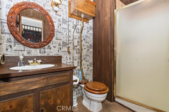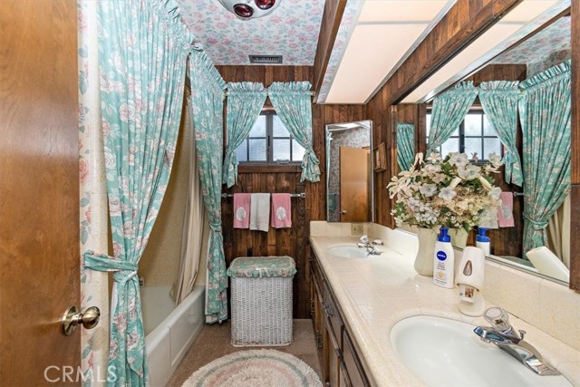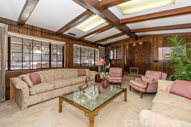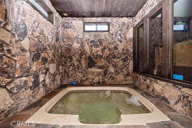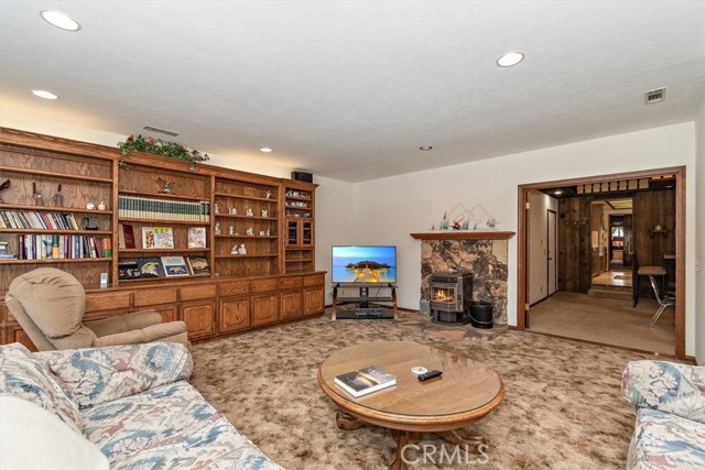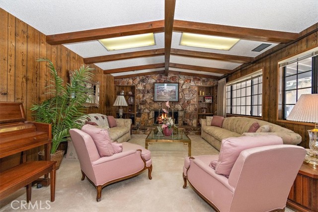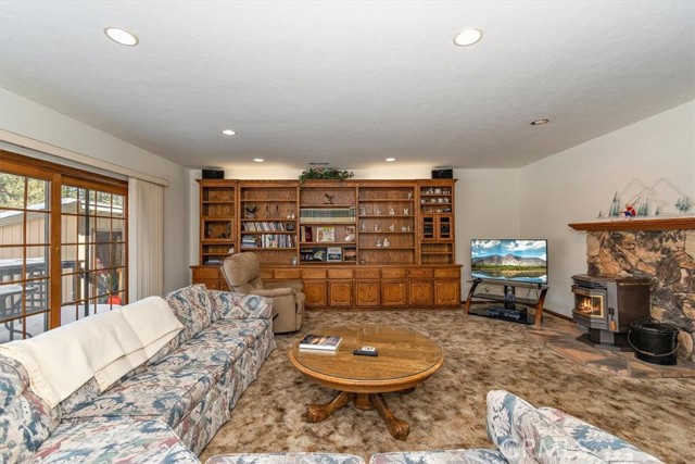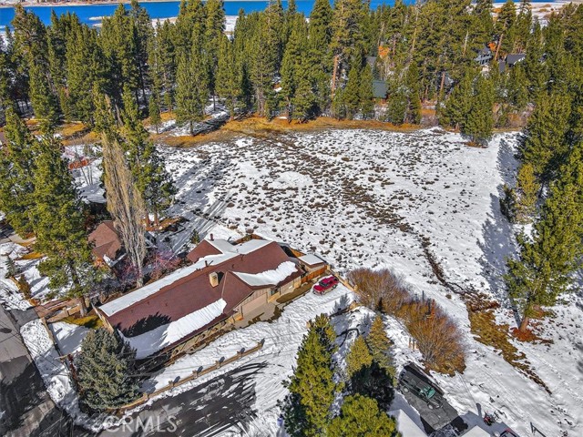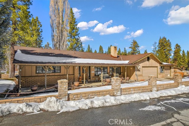 This centrally located Eagle Point property is a great opportunity to spread out & enjoy all the elbow room this 2795 sqft home on a 10,400 lot affords. Plus, since the property is adjacent to a nature preserve & on a corner, it feels even more secluded! With lots of south-facing parking & storage, this property can accommodate a number of cars, plus RV w/electrical hookup &/or boat storage, & be easy to clear of snow in the winter. Don't miss the efficient dual-pane windows and dual-unit forced air heating! Three bedrooms, a full bath, & master suite are located in the west end of the home, with kitchen, dining, living room, & sunroom/spa room in the center for entertaining. The family room on the west side provides even more entertaining space with the deck off the side, & with the 3/4 bath it could be converted to a master suite or guest/in-laws quarters easily. The spa & sunroom could also make a good 4th bedroom. The heated one-car garage could also make a good wine cellar, workshop or media room. Boasting cozy cabin features, such as pellet stove in the sunroom, wood burning stoves in the family room & kitchen, & a full-wall stone fireplace in the living room! Wood-paneled walls, open beam ceiling accents, & an indoor spa with stone walls add to the rustic charm. Half a mile to Swim Beach & Meadow Park, Half a mile to the ski shuttle lot, a mile & a half to Snow Summit & hiking, & a mile & a quarter to Village shops & dining, this property is a short walk to many of Big Bear's amenities!