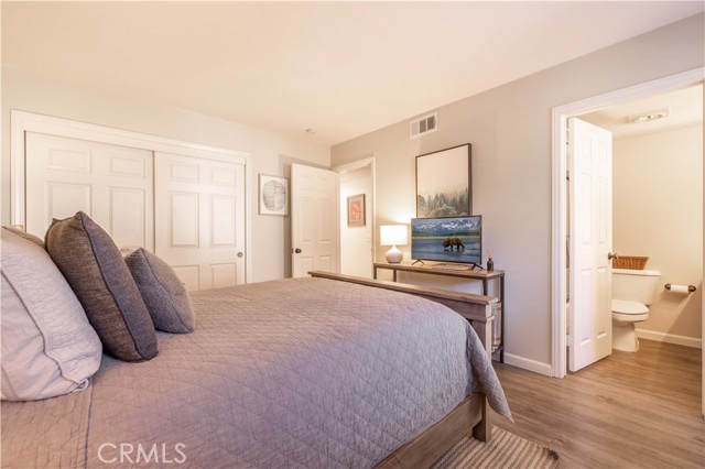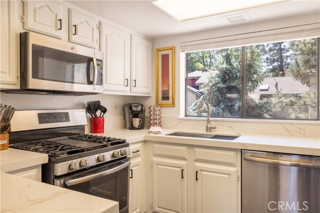 This is your chance to own one of the few 3 bedroom units in the Bear Meadows complex ~ just STEPS from Bear Mountain Ski Resort and Bear Mountain Golf Course! This complex is meticulously maintained and centrally located ~ just moments from all Big Bear has to offer. Tastefully remodeled including all new flooring, interior paint, updated bathrooms, kitchen and more ~ a turn key and ready mountain escape or investment property! All bedrooms on bottom level including a master suite with private deck and two additional spacious bedrooms and full bath. Upstairs gathering area boasts vaulted beamed ceilings with enough room for the whole family. Spacious upstairs deck with peaceful treed setting. Enjoy the many amenities of Bear Meadows including a well maintained clubhouse with gym, spa, pool table and tennis court! An ideal location to enjoy both summer and winter activities. Don't miss this unique opportunity!