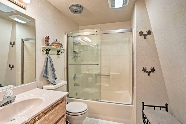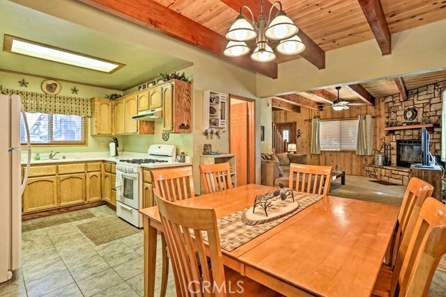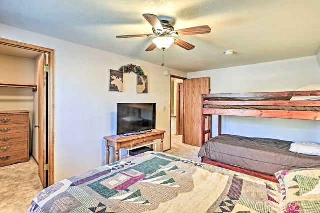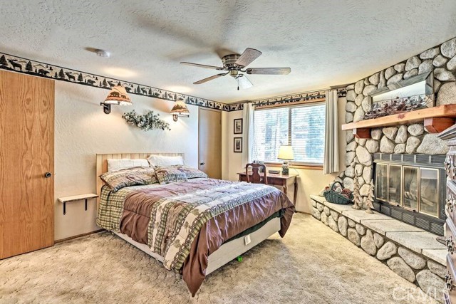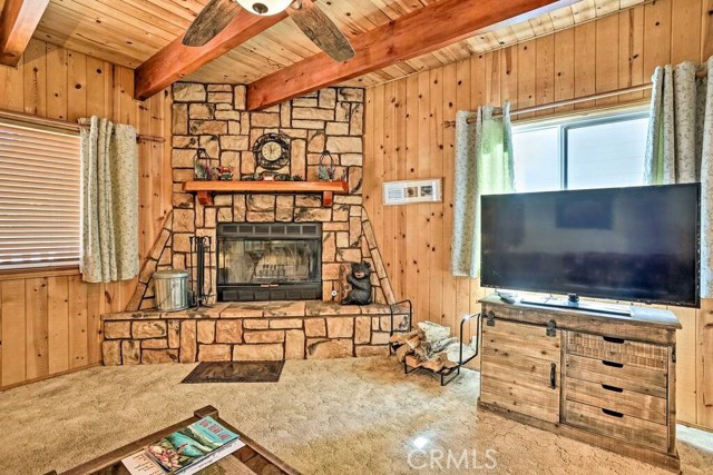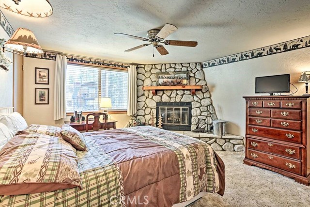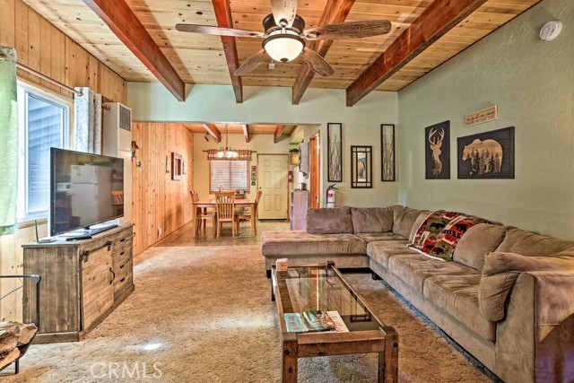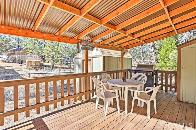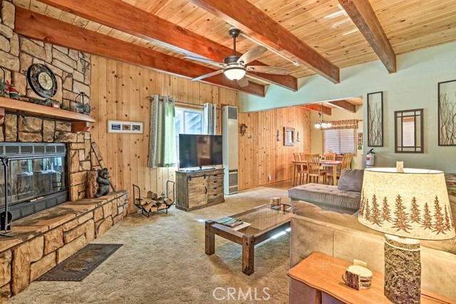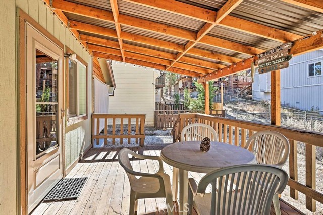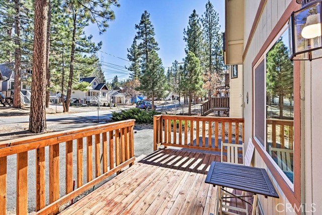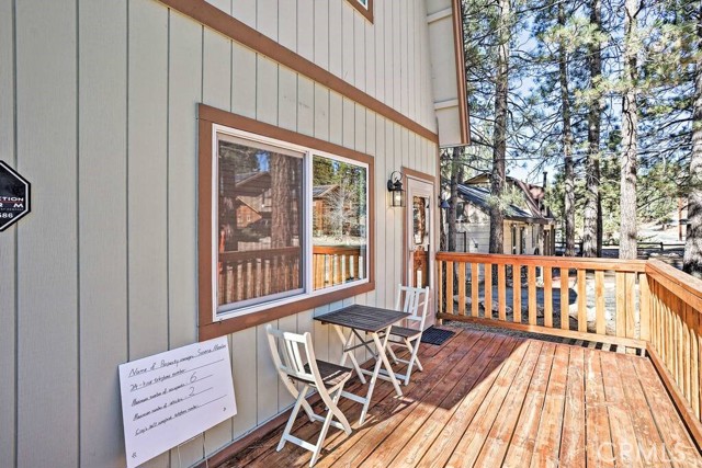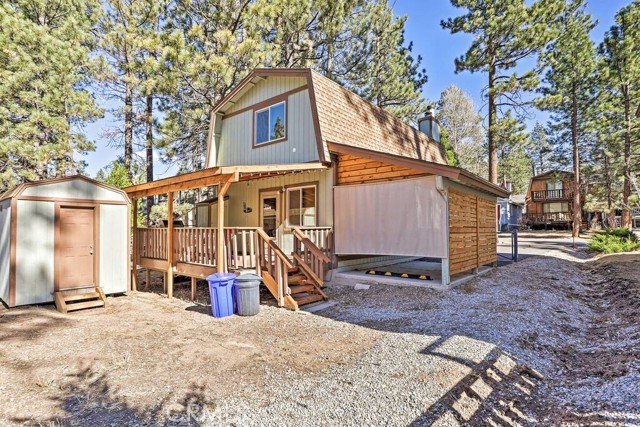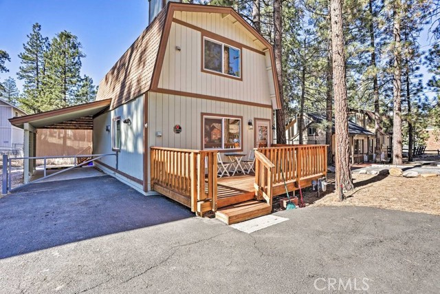 Highly desirable central location in Big Bear. Walk to the lake, country store, hiking, restaurants, and village shops. Perfect for your mountain vacation getaway or doing Airbnb. Very safe location at the end of a quiet street. Two brand new decks to enjoy the sunrise and sunset views. New roof, paint inside&out, level, treed lot, storage building, partially enclosed and gated carport, boat and RV parking, and parking for 5. Open floorplan throughout, from dining and kitchen to the living room with 2 fireplaces. One upstairs in the master and one in the living room. Ceiling fans, skylight, washer-dryer hook-ups, large bedrooms, and both with a walk-in closet. The windows have all been replaced as have the security screen doors. There is also an indoor laundry closet ready for a stacked washer/dryer unit. This is a double lot giving you access, storage, and parking down the sides of the property rather than only in front. Just minutes from the local ski resorts and all the shopping that Big Bear has to offer.