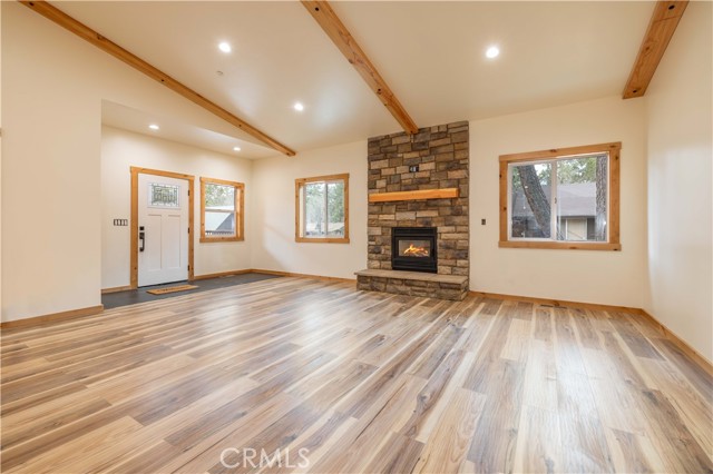 NEW CONSTRUCTION SINGLE STORY HOME A COUPLE BLOCKS AWAY FROM ACCESS TO NATIONAL FOREST!!!!!! This new construction has everything you have been waiting for in your Big Bear get away!!!! Open floor plan ~ Log siding home ~ owned solar panels ~ nice size pantry ~ separate laundry room area ~ plenty of parking space. Come and see this home in the woods, it won't last!