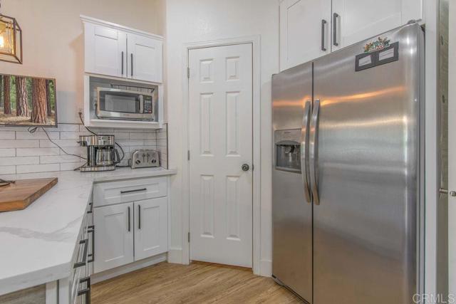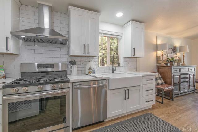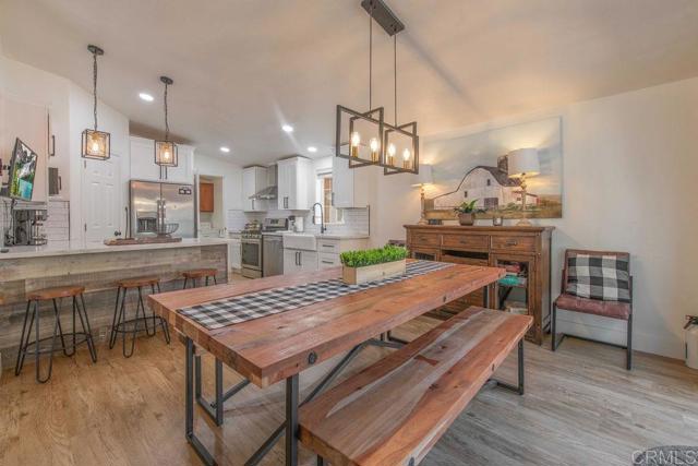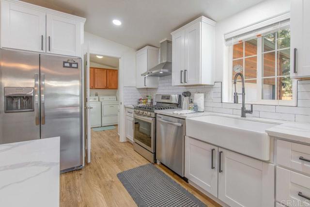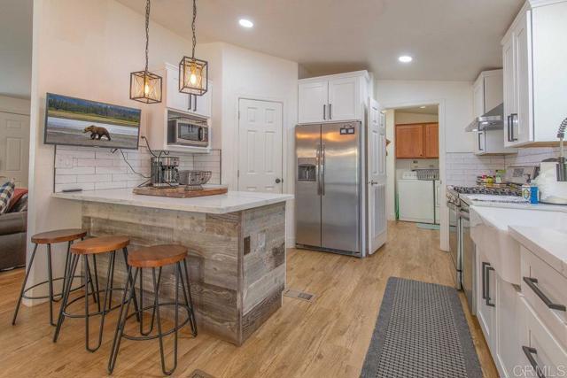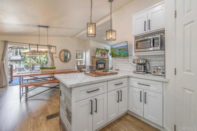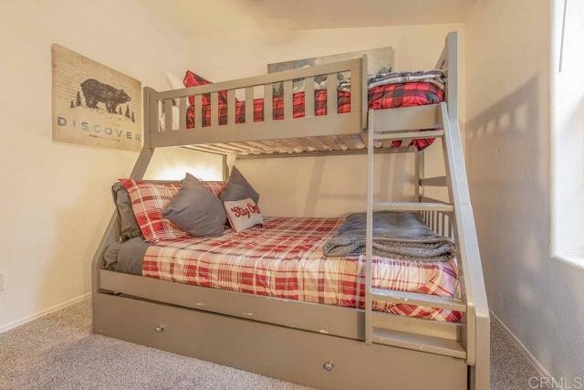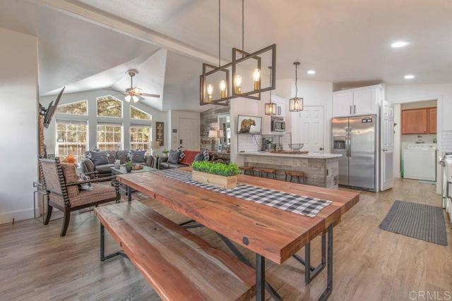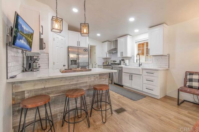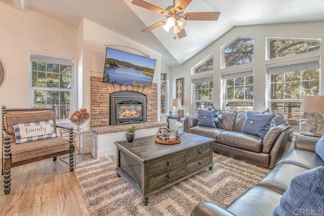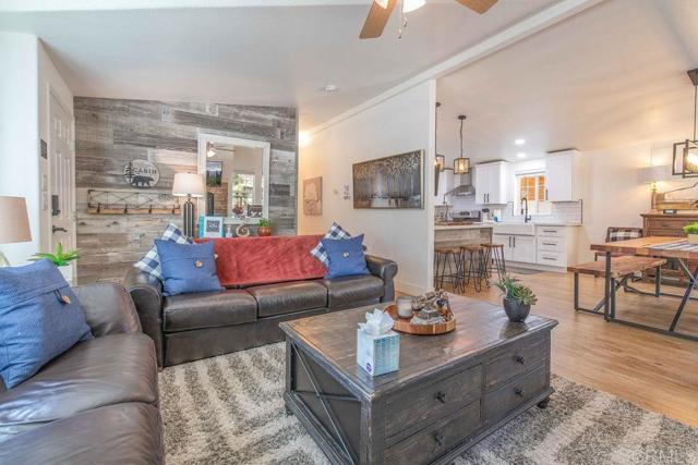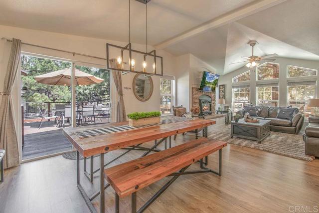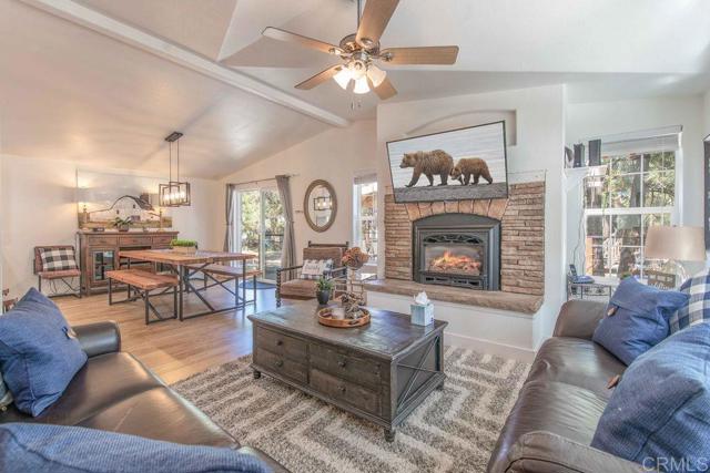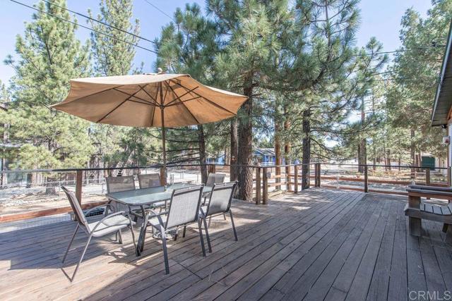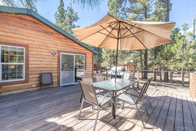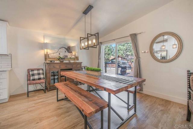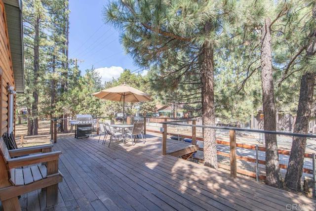Big Bear City Dreaming? Approved Airbnb short term rental. Large Pine Trees? New Large Deck to enjoy the mountain air? Well, then WELCOME HOME to this turn key home with the furniture is negotiable. As you walk through the front door you are greeted with a vaulted ceiling living room with wood style feature wall and gorgeous fireplace with tile surround, large windows that help fill the room with natural light. The living room opens up to the large dining room that connects to the updated kitchen which features new cabinets and quartz counters. 1 car attached garage. Nice corner lot. Could easily be a 3 bedroom. You will enjoy being in this kitchen fully loaded with stainless steel appliances, Subway style tiling backsplash, Farm Sink and complete with bar style seating so you can enjoy company while being in the kitchen. Your dreams are complete with Master Suite which also features vaulted ceilings and ensuite bath, Full Size Laundry Room where the washer and dryer convey, Central HVAC with new AC, Brand New Vinyl Flooring throughout main living areas, Carport and 2 Separate Driveways that provide plenty of parking. Come Fall In Love Today.