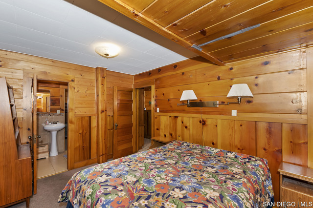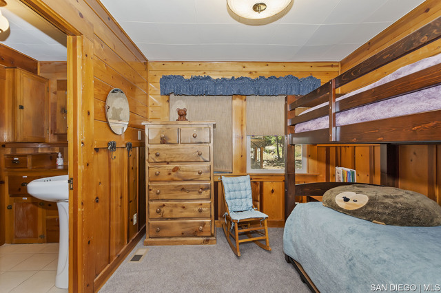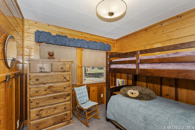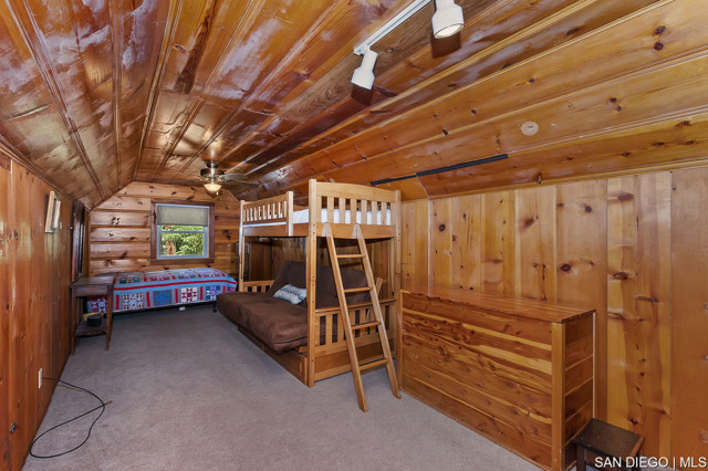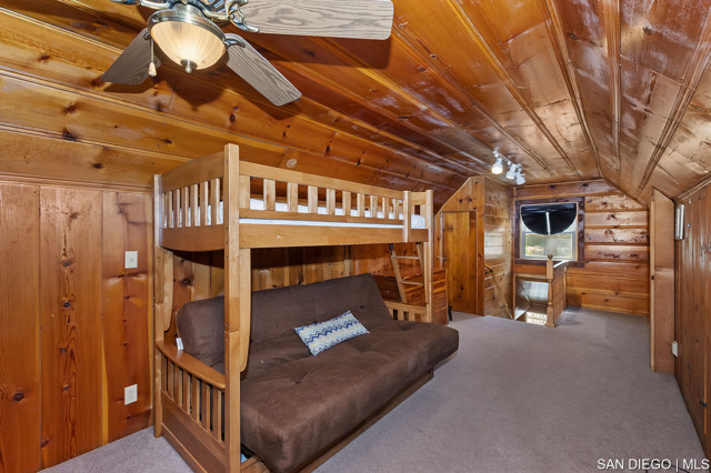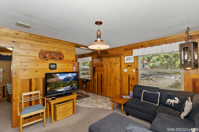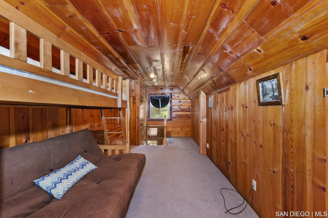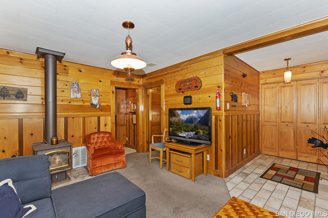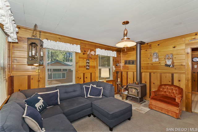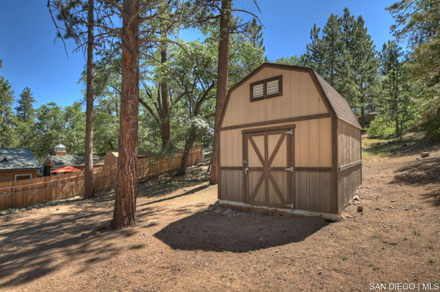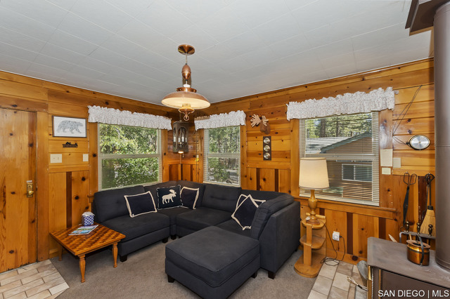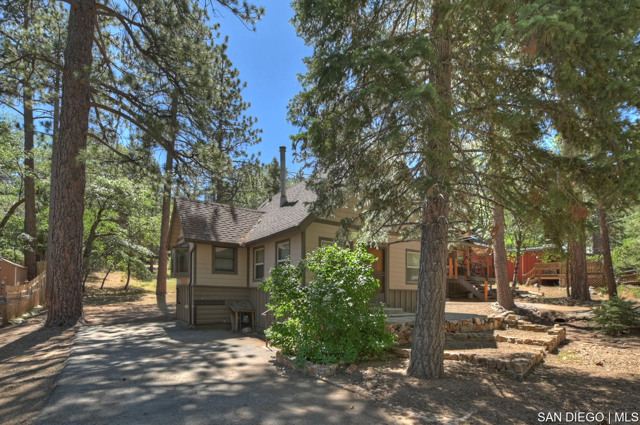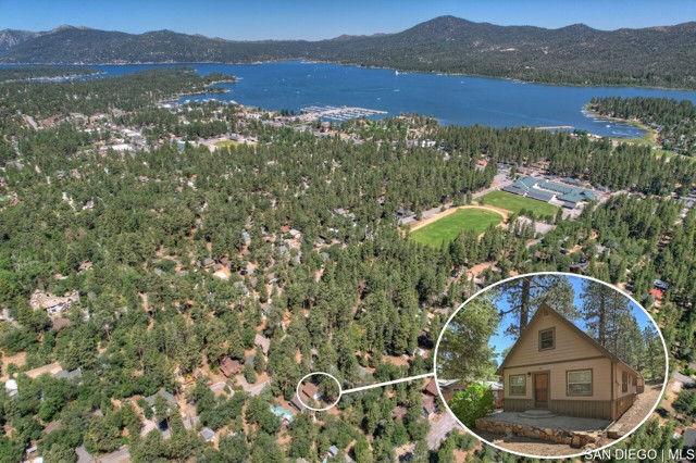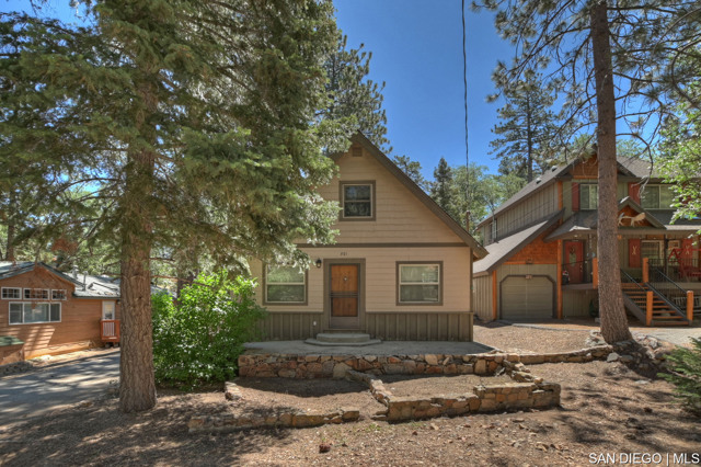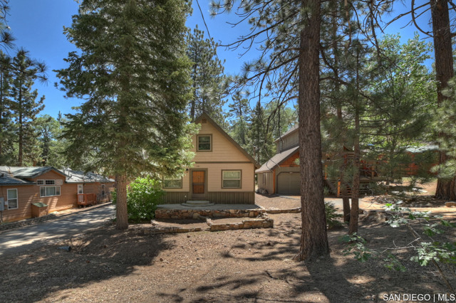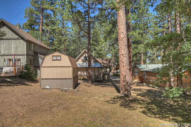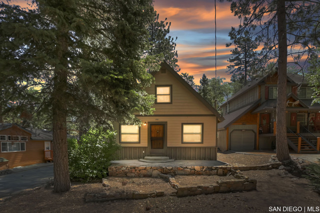 ESCAPE TO YOUR CLASSIC MOUNTAIN CABIN NESTLED IN THE HEART OF BIG BEAR LAKE ideally located on a quiet dead-end street leading into the National Forest. Close to Snow Summit Ski Resort, the Zoo, along with hiking trails, shopping & dining in the Village area. Explore all the adventures Big Bear has to offer and then come home to enjoy your 3-bedroom 1.5 bath mountain retreat cabin with all the comforts. Knotty Pine interior, wood burning fireplace/stove, forced air heating system, new hot water heater (just installed June 2024), laundry area, two spacious bedrooms downstairs with an adjoining Jack and Jill connecting full bath, 1/2 bath off the kitchen area and a spacious 10' x 30' loft bedroom upstairs. The level treed lot offers 7395 sq ft with room for your vehicles, RV, boat/trailer and play toys with a storage shed too. Furnishings are negotiable in the sales price which makes this turnkey cabin a perfect investment. Neighborhood allows vacation rentals ~ current owners have used the cabin for their family enjoyment only.