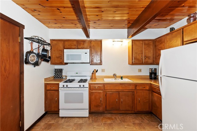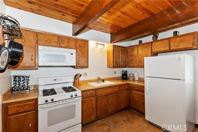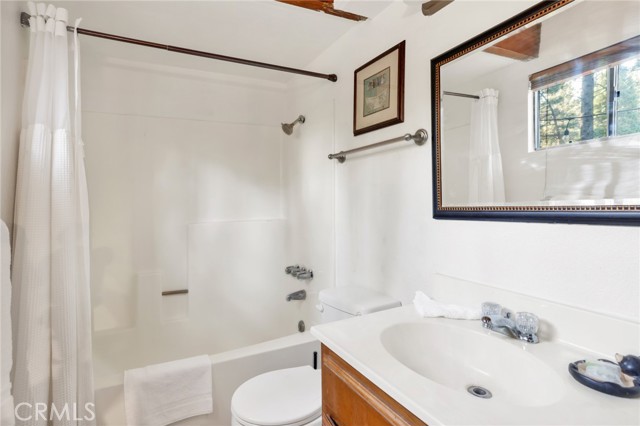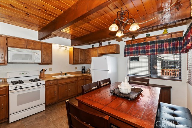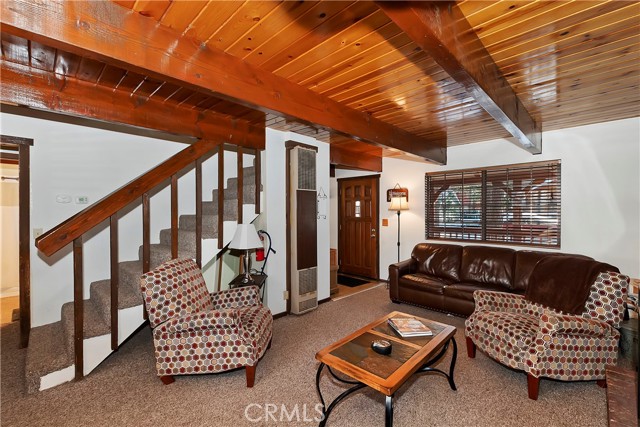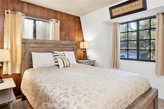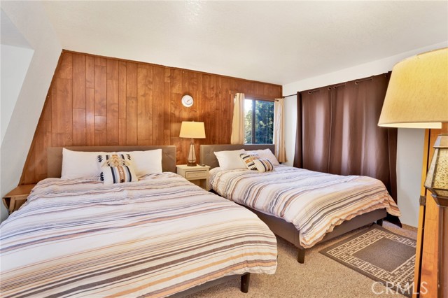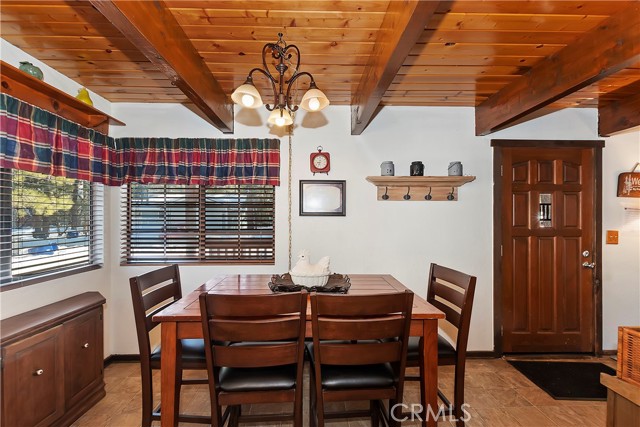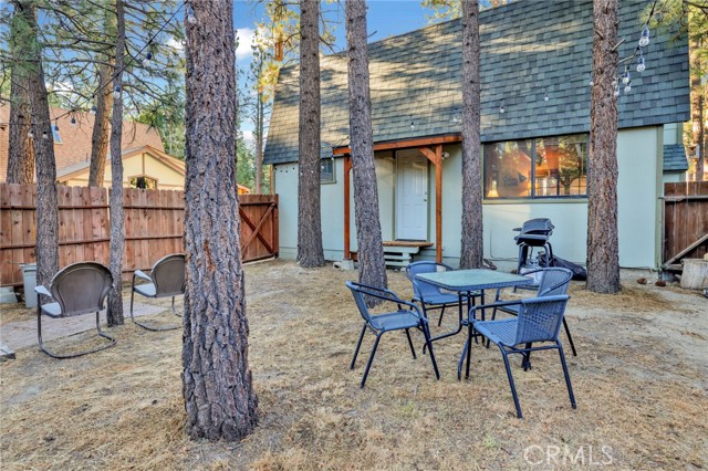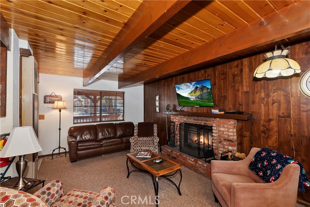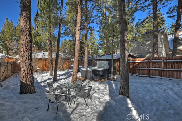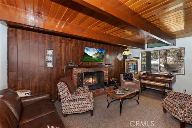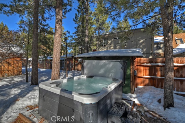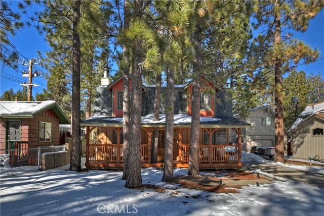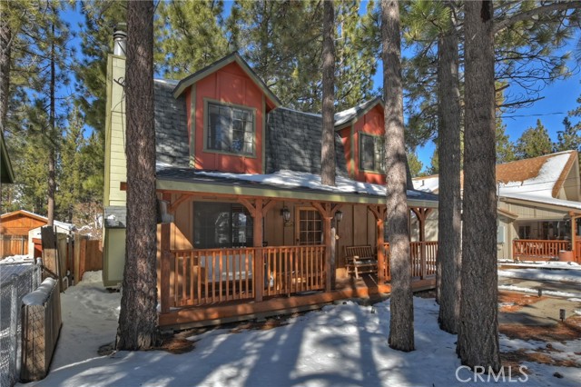 Charming 2 bedroom, 2 bath Mountain Getaway located in a nice area of Big Bear City ~ Comfortable living room with brick fireplace and wood beamed ceilings ~ Spacious kitchen ~ Dual pane windows ~ Many recent upgrades in 2022 and 2023, including a new roof, interior and exterior paint, new railing on the front porch, and a new awning over the back door ~ Nicely treed, level lot with roomy back yard, complete with a hot tub for you to enjoy a relaxing soak after a long day of fun ~ Just a short drive to the slopes, lake, dining and shopping ~ Currently on a vacation rental program presenting an enticing opportunity for those seeking both a personal haven and potential investment in our beautiful Big Bear community.