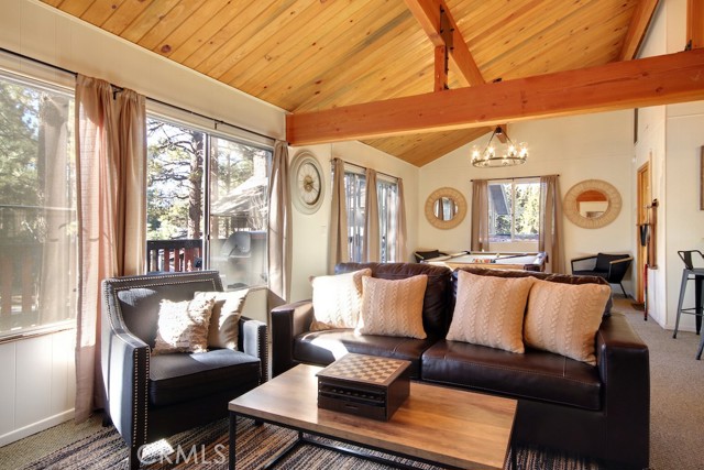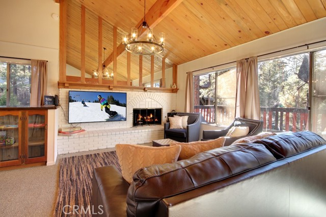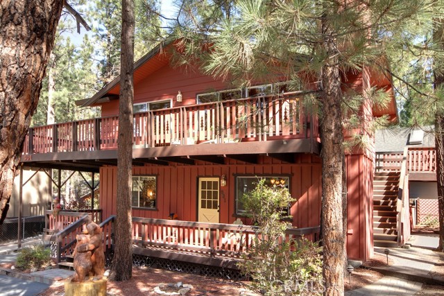 Freshly painted Chalet-style home is located in the desirable neighborhood of Pinewood Estates. 3bed / 2bath cabin with vaulted ceilings. The property has two fireplaces one in the living room and one in the downstairs den. Nestled amongst the trees, this cabin boasts a beautiful lot with large deck for entertaining and plenty of parking for your family and guests!