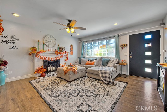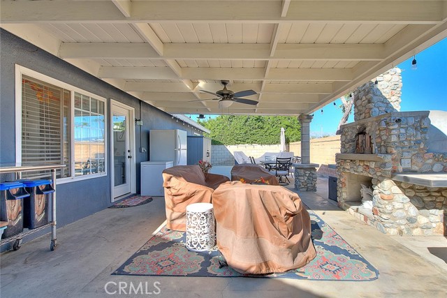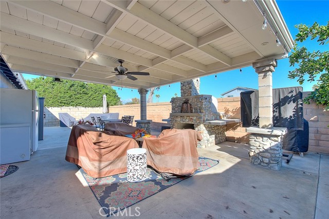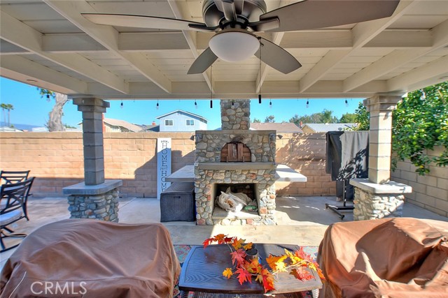 Located in a highly desired Chino cul-de-sac neighborhood, this single story home features stunning curb appeal and is ready for you to move in! Upon entering, you will appreciate the spacious family room, centered around the warm fireplace, the perfect space for relaxing. The dine-in kitchen features fresh white cabinets with granite countertops and tile backsplash. The home features 3 bedrooms including a large primary suite and a half bathroom. The low maintenance yard features a covered patio and your very own wood burning pizza oven, perfect for entertaining!. You don't want to miss the numerous upgrades throughout the home including the newer AC unit and solar panels that result in little to no bill from Edison. Centrally located in the heart of the city close to all major shopping and dining locations. You don't want to miss the opportunity to make this your new home!