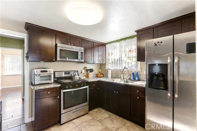 Come and enjoy this corner lot Beauty!! Numerous Upgrades with open floor plan. Upgraded kitchen with granite counters and travertine tile floor. Recent remodeled bathroom with walk in shower. Large master bedroom. Indoor laundry area. Enjoy the summer months in the inviting back yard, with fire pit and brick bar area. Great home for Entertaining guests. Large Fenced side yard for all your puppies to stay secured or possibility of RV parking. Plenty of parking on street or inside the spacious detached 2 car garage. Beautifully landscaped and curb appeal. Detached garage is perfect for a permitted ADU in the near future.