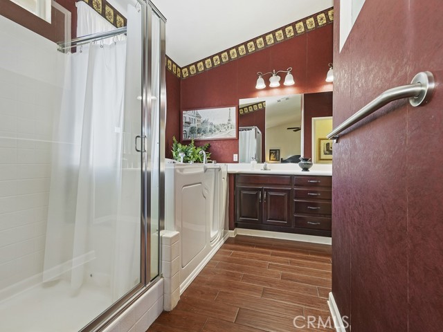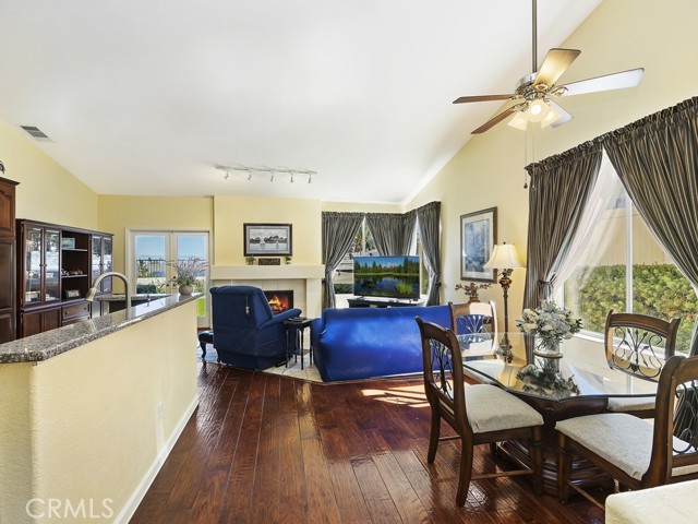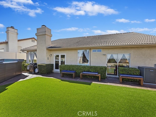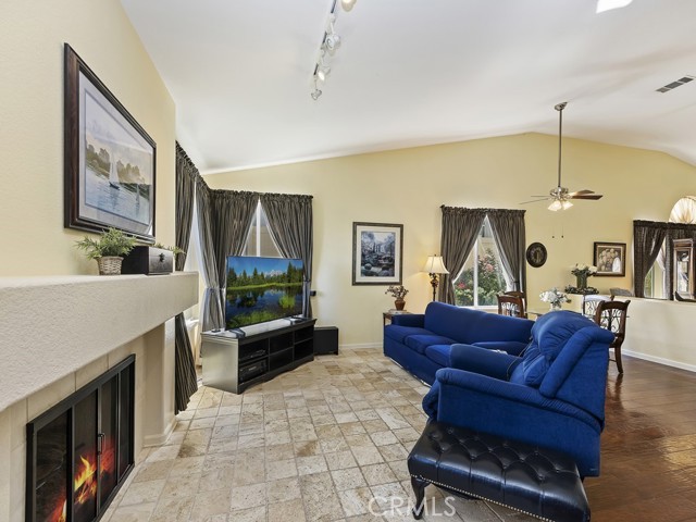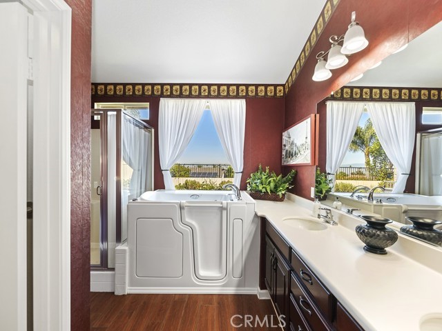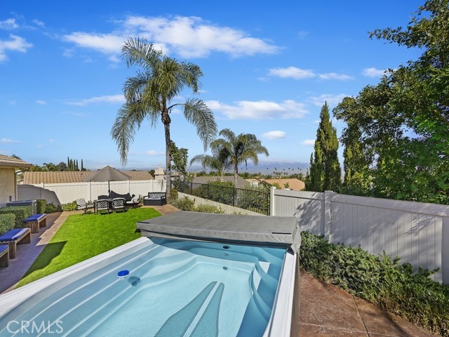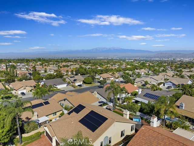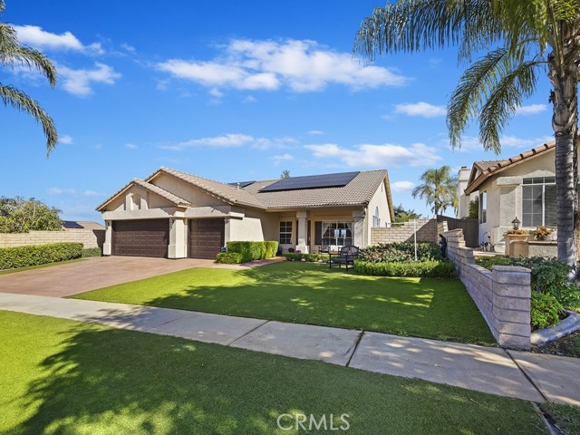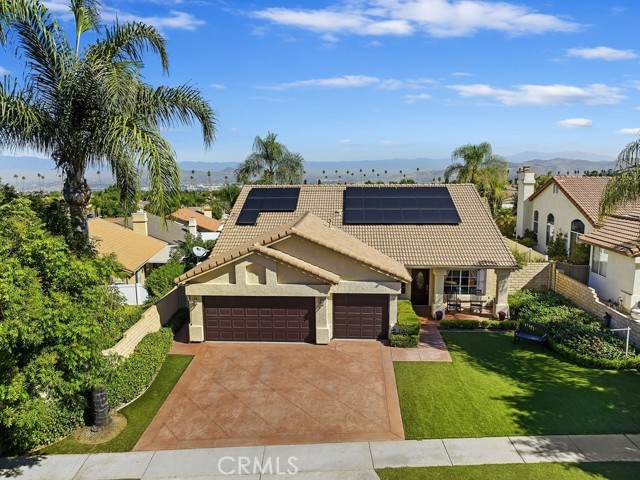 Welcome to this exceptional single-story home in Corona. Walking up to the house, you'll immediately notice the new solar panels that virtually eliminate the Edison bill. As you explore further, you'll be captivated by the city-lights and mountain views that grace this unique property, creating an ever-changing backdrop for your daily life. The extended front porch, adorned with new color-infused concrete, invites you to unwind and enjoy the serenity of the neighborhood. Unlike some homes, the sidewalks and driveway feature all-new concrete, ensuring lasting quality without the worry of surface wear. Inside, the timeless elegance of hardwood floors flows seamlessly throughout the entire home. The kitchen and master bath are adorned with granite countertops and re-faced cabinets, a testament to the attention to detail that went into every corner of this residence. Bathrooms feature tastefully tiled floors, while the living room, dining room, and family room have been thoughtfully modified to create a spacious and open living area. Ceiling fans in three rooms and above the dining table provide comfort, while halogen lights over the fireplace add a cozy touch. The fireplace mantle, customized from the builder's model, adds character and warmth to the living space. A luxurious walk-in tub with a Jacuzzi, awaits you in the master bath, offering a serene escape. Step into the backyard oasis, featuring artificial grass and extensive landscaping that beckons you to relax and savor the outdoors. The rose-colored concrete patio is the perfect spot for gatherings and leisure. The 3-car garage includes a 3rd bay converted into a craft/sewing room with beautiful laminate flooring, catering to your creative pursuits. You'll also benefit from a whole-house water filter and the peace of mind that comes with a whole-home re-piping, eliminating any risk of slab leaks. For ultimate relaxation, a $25,000 swim spa graces the backyard, providing endless entertainment and relaxation possibilities. The 4th bedroom has been transformed into a retreat off the master bedroom, but it can easily be converted back to its original purpose, ensuring flexibility for your needs. This remarkable Corona home is truly a rare find, offering a combination of modern conveniences and elegant design that is sure to impress. Don't miss the opportunity to make this your forever home. Contact us to schedule a viewing & experience the magic for yourself.