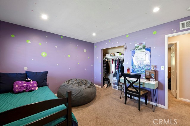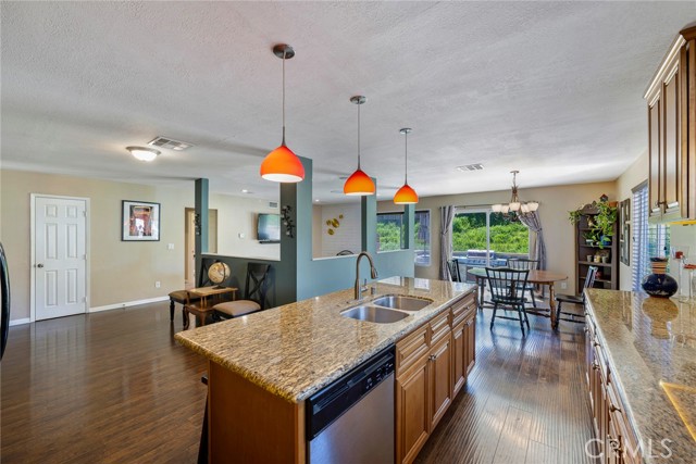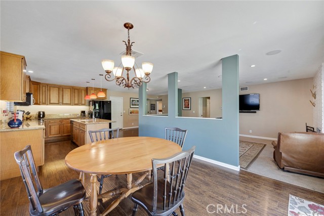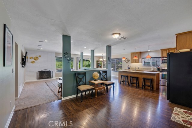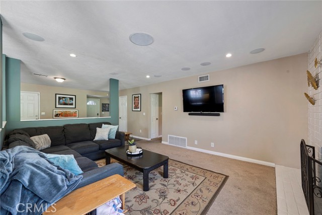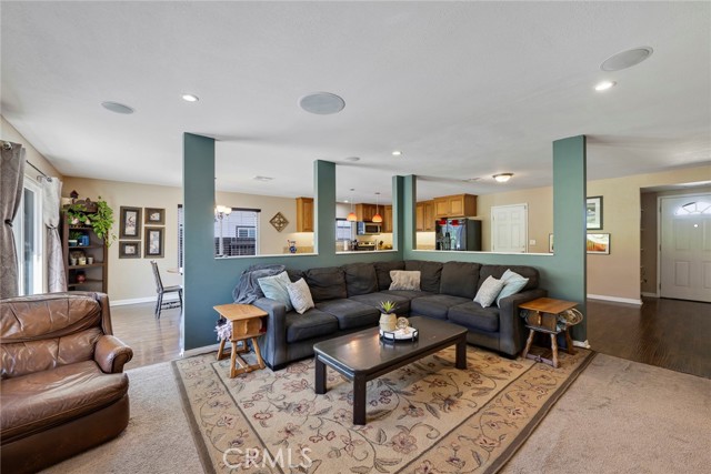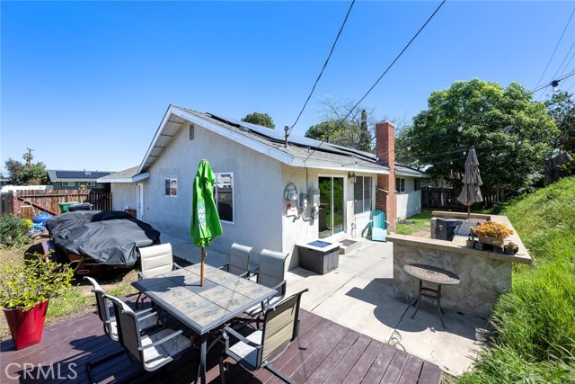 Beautiful Single story home located on a quiet, tree lined, street near schools and parks in Corona. 4 bedrooms and 2 baths. The home has laminate wood floors, granite counter tops and stainless steel appliances with an open floor plan. Family room has recessed theater surround sound speakers and wood burning fireplace. LED lighting throughout. Dual pane windows. Master bath has been upgraded with granite counter and tiled shower. The home is wired for an alarm system. Heating and air condition units are 1 year old. Newer Roof Solar is 2 years old and will be paid off prior to closing The back yard has a built in BBQ area, deck area and RV access. 2 Car attached garage. NO HOA