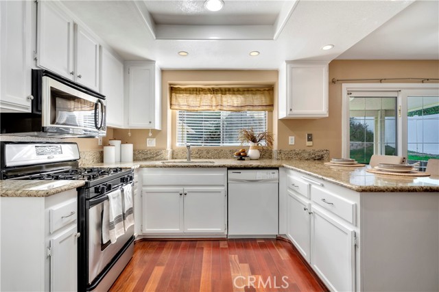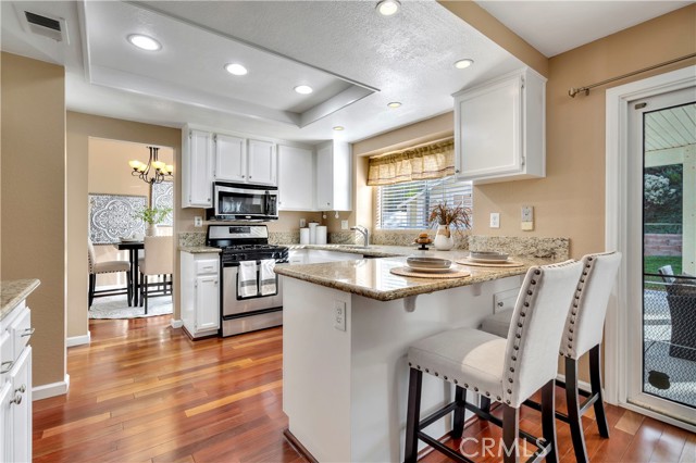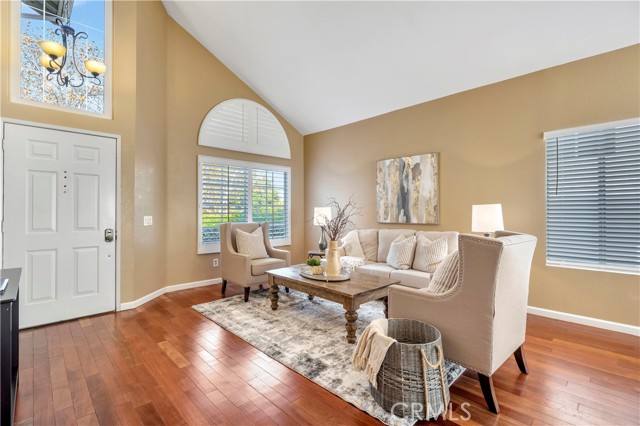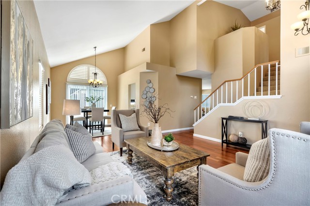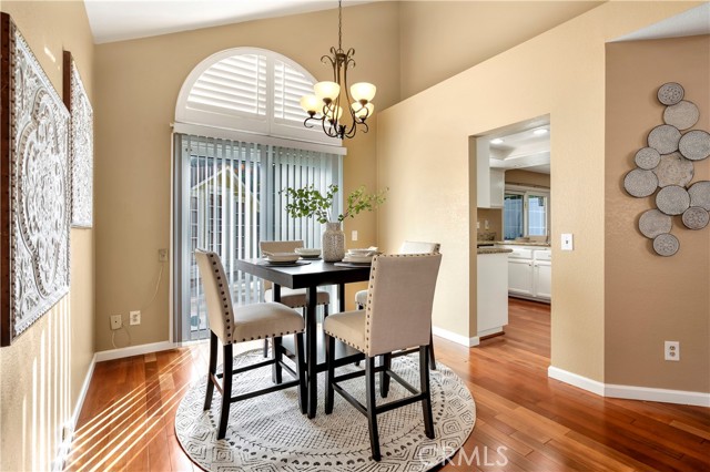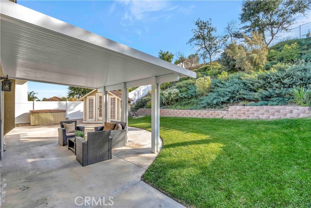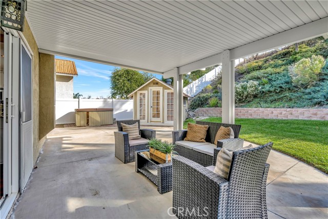 Dreaming of a home where you can simply move in and unwind? After a short drive through tree-lined streets and scenic grounds of the Santa Ana Mountains, home awaits you. This 3-bedroom abode offers affordable living next to Yorba Linda in the picturesque community of Sierra Del Oro in the city of Corona. Natural light filters through the oversized stacked windows and the vaulted ceilings in the living and dining areas to immerse the interior in a welcome ambiance. The home is accented with hardwood floors throughout the lower level, plantation shutters, and a popular two-tone color scheme. Granite countertops, stainless steel appliances, and an open-style breakfast counter equip the kitchen. Ideal for gatherings because of its openness to the kitchen, the warming family room highlights a wood-burning fireplace and an upgraded sliding door to flow to the backyard easily. The vaulted ceilings enhance the main suite's well-sized proportions and highlight a lounge area, a walk-in closet, and a private bathroom with a soaking tub. The four-season shade structure in the backyard will encourage alfresco activities all year round or to unwind and bask in the evening breeze after those long working hours. The backyard setting provides abundant space to roam for your family and four-legged friends and even room to grow your own vegetables. Bonus perks include an upgraded A/C condenser, most dual-pane windows, upgraded sliding doors, and vinyl fences, and there's no HOA and no Mello Roos. The property is only minutes away from the 91 freeway, the 91 express lanes, the 241 toll road, the 71 expressway, and the Metrolink station. Orange county's main attractions and shopping are only one exit away. Nearby nature trails, including the famed Skyline Trails and Prado View regional park, are popular spots for weekend hiking, biking, and getting fresh air with the family.