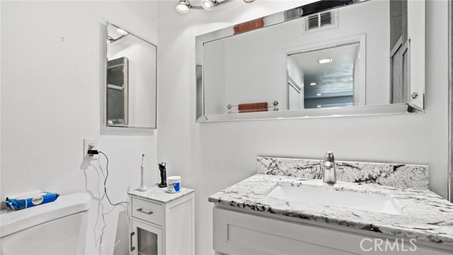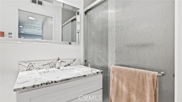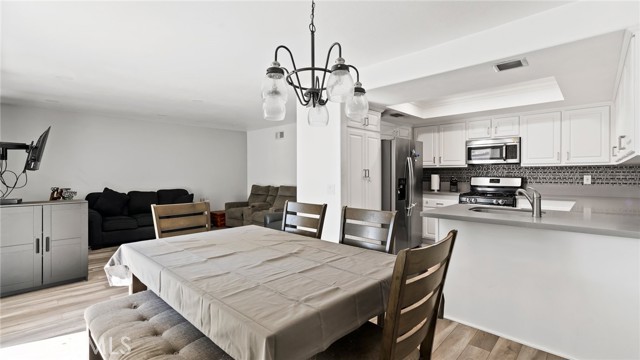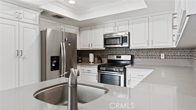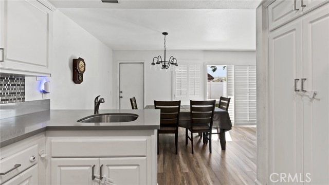 ONE STORY 3 Bedroom, 2 Bath condo with ATTACHED 2 car garage. No neighbors above this condo. Remodeled kitchen and master bathroom within the last 4 years. Kitchen includes: quartz counters, mosaic glass backsplash, stainless steel single basin sink, stainless appliances. Dual paned vinyl windows/shutters on the windows. LED recessed lighting in the kitchen, living room and bedrooms. Newer vanities in both bathrooms. Shared driveway with adjacent units. Large patio with fake turf easy maintenance. Vinyl fencing around patio.