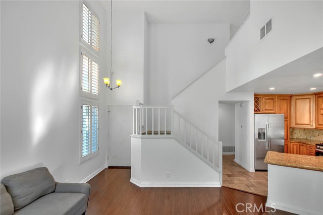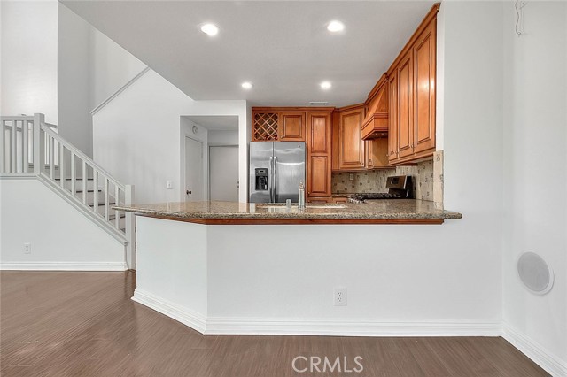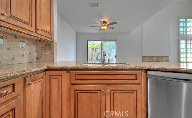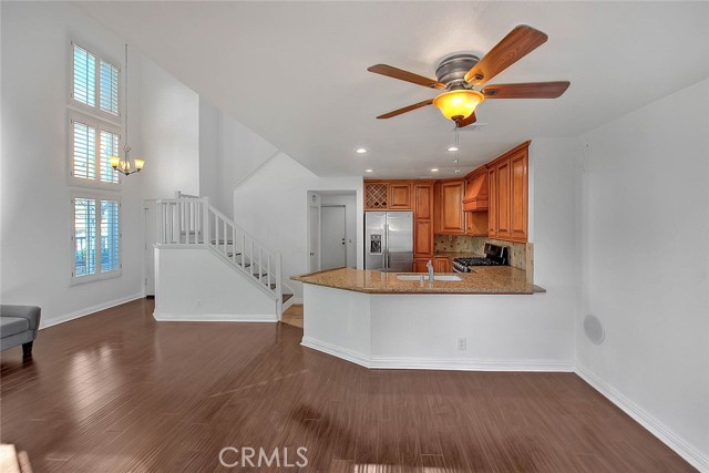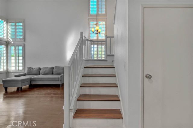 Peace and serenity meets modern day convenience in one of Corona’s most desirable neighborhoods! You will Fall in love with this 3 bedroom, 2.5 bath townhouse with beautiful curb appeal. Warm and inviting home with high ceilings, bright and cheery kitchen that's designed with today's chef in mind; custom cabinets, granite countertops, beautiful travertine tile, a walk-in pantry, stainless steel appliances and breakfast bar perfect for homework or hosting events. The adjacent dining/living room has a cozy fireplace, sliding doors opening to the large backyard with built-in hookups for gas and speakers making for incredible indoor/outdoor entertaining. All bedrooms are upstairs with mirrored closet doors. 2 full baths located upstairs with the 1/2 bath downstairs. Nice sized primary includes a large closet. OTHER FEATURES: New 2 Panel Windows, Freshly Painted, Plantation Shutters, Central A/C and Heating, 2 car garage, community swimming pool, in-unit laundry room with washer and dryer. Near restaurants, post office, library, convenient to 91 and 15 Fwy, schools and shopping in Dos Lagos and Crossings at Corona.