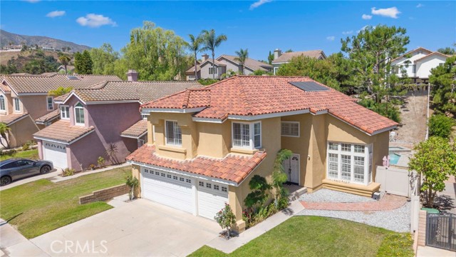 Welcome to your dream home in the highly desirable Sierra Del Oro community. This beautiful property features 3 spacious bedrooms, 2.5 bathrooms, and an inviting foyer leading to a sunlit family room with a charming fireplace. The gourmet kitchen boasts amazing countertops, cabinets, and high-end stainless steel appliances, perfect for culinary enthusiasts. The master suite is a true retreat, offering a spa-like bathroom with a sunken tub, stand-up shower, double vanity sinks, and abundant natural light. Enjoy the breathtaking mountain and city light views from your low-maintenance backyard, complete with a custom covered concrete patio and lush landscaping. Relax in your private pool and spa, designed for year-round enjoyment and outdoor entertainment. This home offers exceptional curb appeal with comforting upstairs carpet floors and custom tiles throughout the lower level. Additional features include vaulted ceilings, ample storage space, a convenient main floor laundry room, and an oversized 3-car garage. Conveniently located near top-rated schools, major freeways, and the Metrolink station, this commuter's paradise offers close proximity to Orange County, Anaheim, and Yorba Linda. With no HOA and low property taxes, this property is an exceptional value. Enjoy nearby amenities such as the Skyline Hiking Trail and Cleveland National Forest, perfect for outdoor enthusiasts, with local shopping and grocery stores just minutes away. The award-winning local schools and parks are an added bonus for families.