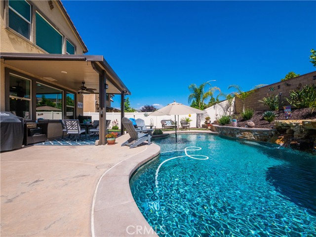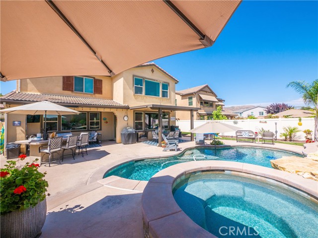 When only the best will do! Model perfect POOL home in the desirable Sycamore Creek community. This home has great curb appeal, front and rear. If you are looking for the perfect home that is ready to move into without lifting a finger, this is it! Front yard has artificial grass and backyard is tastefully landscaped with a built in salt water pool and spa. Lots of recessed lighting, custom paint, and crown molding throughout. Huge kitchen center island with bar seating. Granite counter tops. Kitchen opens to family room with a fireplace. 1 bedroom on the main floor with private ensuite bathroom. There is also a guest bathroom downstairs. 4 more bedrooms on the second floor, along with a large loft area. Tandem 3 car garage. Fully Paid For 22 Solar Panels which will reduce your monthly house expenses $200-$300 a month (Just like having a $50,000 lower mortgage). The Sycamore Creek community comes with a ton of amenities, including a 5-acre sports park, many parks, 2 pools, and much more. Better be quick on this one!