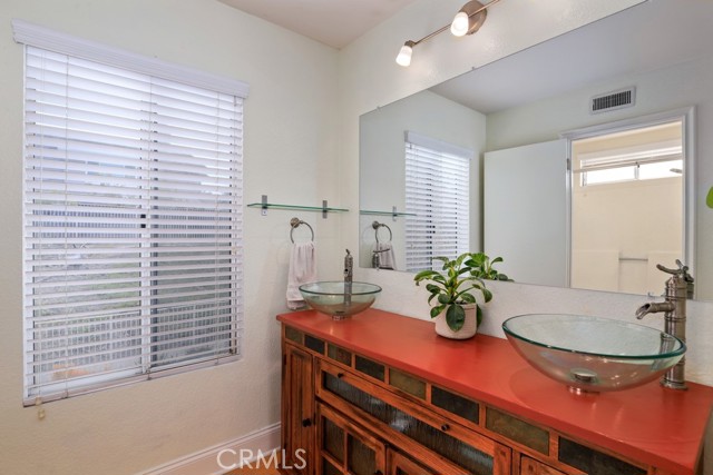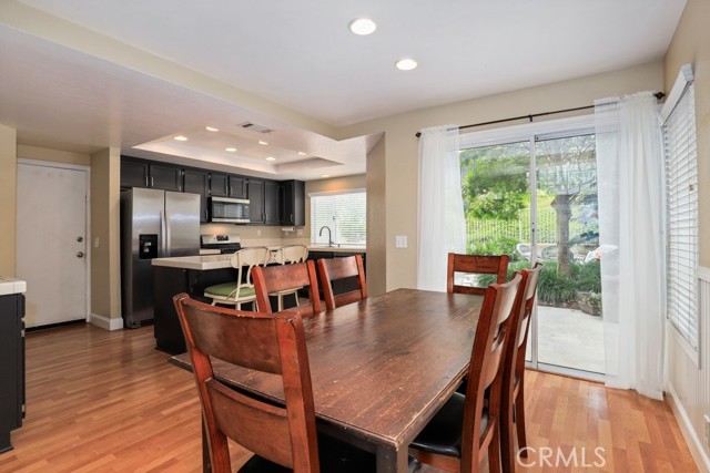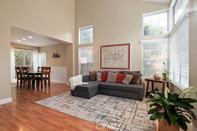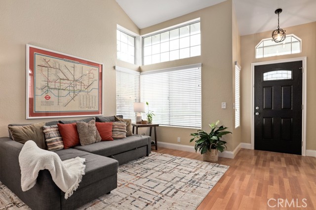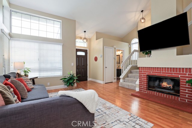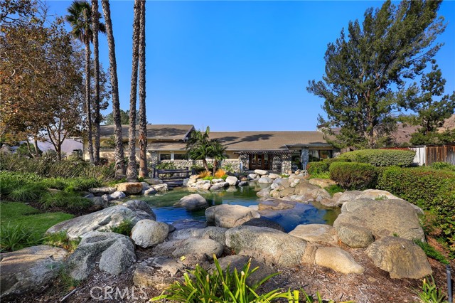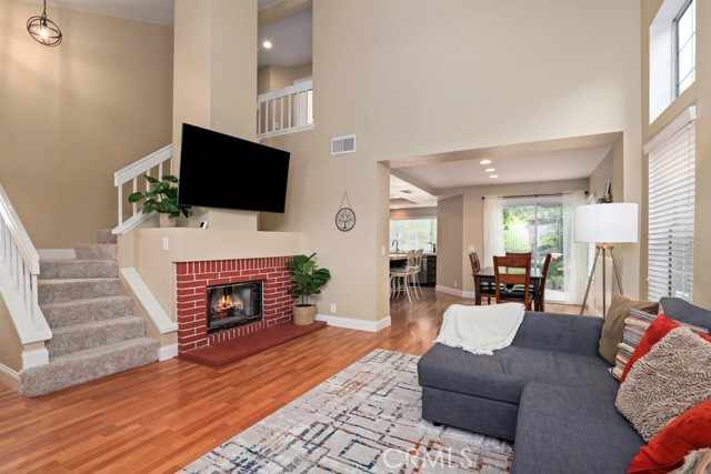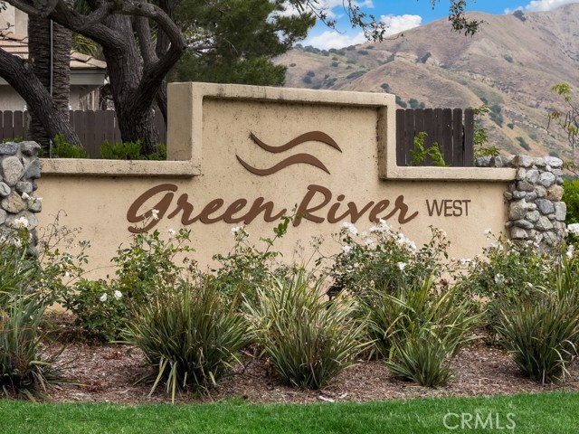 Turn Key 3 bed, 2.5 bath home located in the highly desirable Green River gated community is ready to be made yours and offers great curb appeal with drought tolerant landscaping and front paved area to enjoy! The interior is spacious with custom paint scheme, recessed lights, wood floors, and many updates throughout. Enter into the living room with 2-story ceilings, brick fireplace, and an abundance of natural light. The living room flows into the dining room with wainscoting and sits just off of the kitchen with wood cabinetry, tile countertops, and center island with bar seating. A half bathroom completes the first floor. All of the bedrooms are located upstairs including the huge primary suite with an updated ensuite featuring on-trend vessel sinks and a large soaking tub with shower combo. There is also a full-size hall bathroom for the 2 secondary bedrooms to share. Enjoy the delightful backyard with lush landscaping and a stone walking path with seating area, blooming garden beds, mulch, and trees for shade, this space is perfect for relaxing and entertaining guests. Residents also get to enjoy Resort-Like amenities including a sparkling swimming pool and spa with BBQ area, as well as parks including a dog park, basketball, hockey, racketball, pickleball courts, and the clubhouse offers foosball, pool and ping pong tables, and a gym with a sauna! Conveniently located near schools, shopping, dining, and not far from hiking and biking trails, golf courses, and the 91 Fwy!