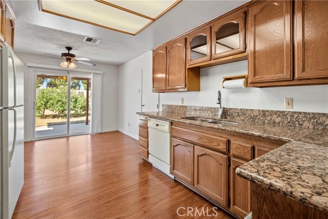 NORTH CORONA-AUBURNDALE/RIVER RD PARK- Single level home that has been updated from its original condition, located on a tree-lined street. Spacious living room with fireplace. Kitchen with stone countertops and newer cabinets. Good size primary bedroom, with larger walk-in closet. Laminate flooring throughout the home. Upgraded dual pane windows. The backyard includes a covered patio area, fruit trees, and a large, detached storage shed. Walking distance to River Rd Park and area schools. Great opportunity to be a part of an established community.