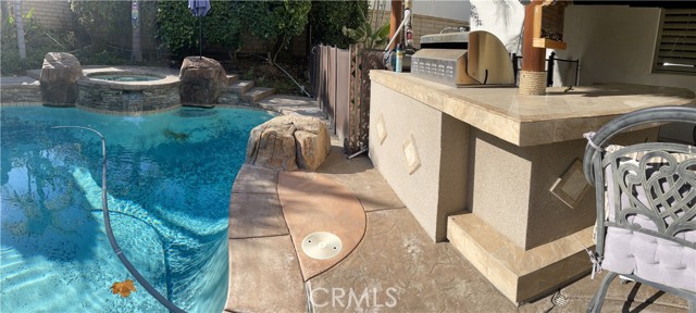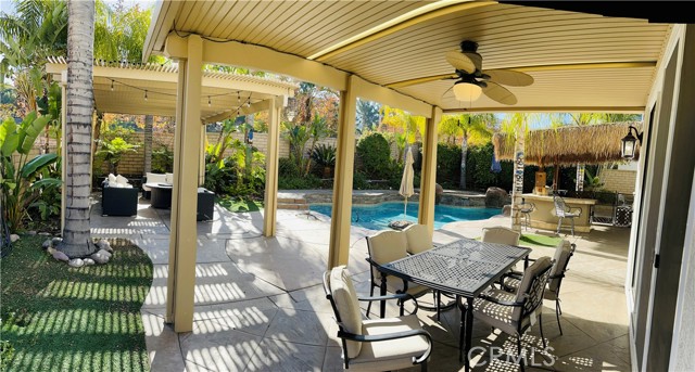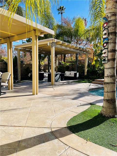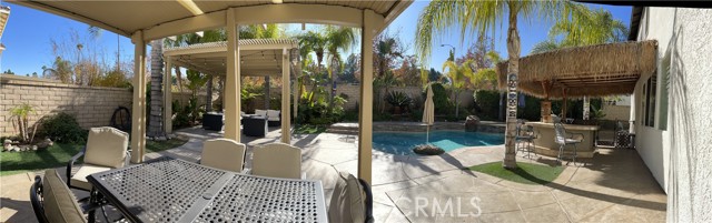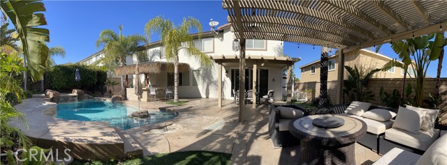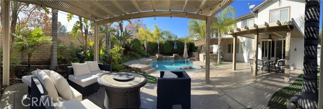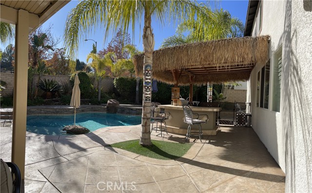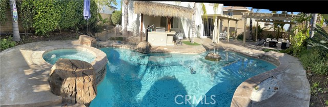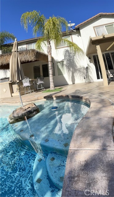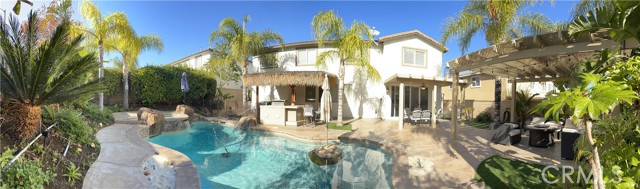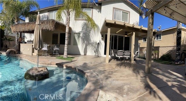A gorgeous property located in a great neighborhood. Pride of ownership is what truly describes this house. As you drive into your three car garage adorned with epoxy flooring you will find an upgraded driveway that may accommodate additional parking if so needed. Upon entering this four bedroom three bath pool home you will find an open layout that will bring satisfaction to your soul and ample space for your family to enjoy. This two story home layout offers maximum privacy on the second floor with a well designed main bedroom as it is located within its own section of the house and the remainder on the opposite side. Large sliding doors offer maximum view to the back yard as it yields the way to your own backyard paradise with palm trees, swimming pool and spa and cover patios on this 9,583 sqft lot together with its own built-in area for grilling entertainment. This home is located in close proximity to hiking trails, freeway that connect various counties and access points.