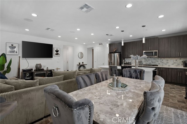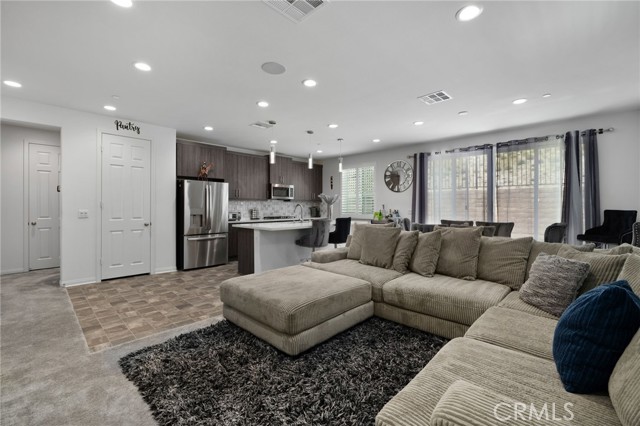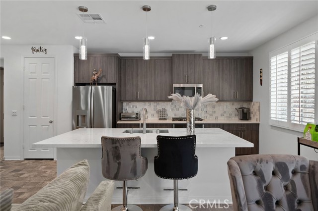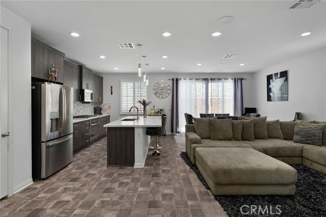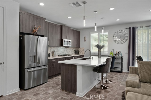 Discover this exquisite home nestled in the highly desirable Terramor gated community. This property offers a blend of modern comfort and luxury with its three spacious bedrooms and two full bathrooms. Enjoy the benefits of paid-off solar panels and a surround sound system is perfect for entertaining. Entertain effortlessly in this open floor plan including the kitchen with granite countertops, stainless steel appliances, a large center island with additional seating, and an abundance of upgraded cabinetry. The master bedroom includes a spacious suite with dual sinks, a large walk-in shower, and an expansive walk-in closet. Two additional bedrooms, a secondary bathroom, and a laundry room complete the interior. The backyard is meticulously landscaped for easy maintenance, offering a serene outdoor space without the hassle. Residents enjoy access to a clubhouse, resort-like pool, and numerous other amenities. Don’t miss this incredible opportunity! Schedule your private showing today and experience the elegance and comfort of this beautiful home.
