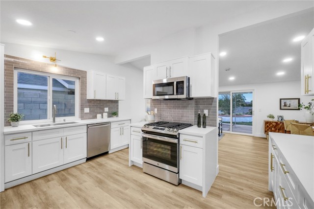 Welcome home to 13101 Cliffshire Ave, a meticulously updated single-family residence nestled in the heart of Corona. This enchanting property offers a harmonious blend of modern amenities and classic charm, making it the perfect place to call home with 3 Bedrooms: 2 Bathrooms Square Footage: 1088 sq. ft. Lot Size: 6,970 sq. ft. As you step inside, you'll be greeted by a spacious and inviting living room with new recessed lighting and a sliding door that leads outside to the covered patio and large green lawn. The entire home has been thoughtfully updated, featuring fresh paint throughout and brand-new flooring that adds a touch of sophistication to every room. The heart of this home is undoubtedly the upgraded kitchen, which boasts a modern design complete with a new gas stove, sleek quartz countertops, and an abundance of new cabinet space. Whether you're a seasoned chef or just love to cook for your family, this kitchen is sure to inspire your culinary creativity. Absolutely perfect for unwinding after a long day or hosting gatherings with neighbors, friends and family, this outdoor space is ideal for entertaining. The backyard also includes an open patio area, excellent for outdoor dining and enjoying the beautiful So Cal weather. Outside, the property has a new beautiful entrance door that sets the tone for what's inside. The well-maintained landscaping enhances the curb appeal and creates a warm welcome for guests. Cliffshire Avenue is not just a house; it's a place where you can create lasting memories and enjoy the comforts of modern living in a charming Corona. With its layout, updated features, and delightful outdoor spaces, this property truly has it all. Take this opportunity to make this house your home.