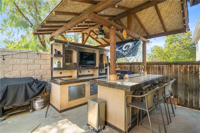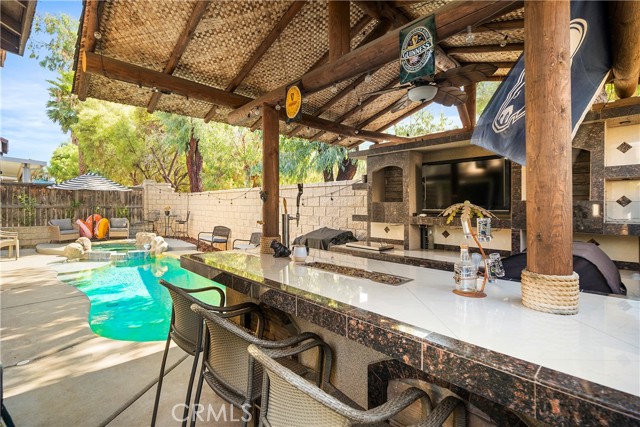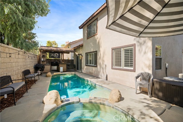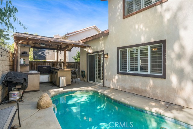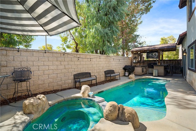 Presenting a splendid 4-bedroom, 3-bathroom pool home with a 3-car tandem garage in the scenic Mountain Gate neighborhood. This residence is a true haven for those who appreciate refined living. Exuding the allure of a model home, it boasts exquisite custom paintwork, elegant crown molding, tasteful light fixtures, and ceiling fans thoughtfully placed throughout the dwelling. The interior is adorned with newer wood laminate flooring that enhances the aesthetic. The kitchen has undergone a tasteful renovation, featuring stunning cabinets, a granite island, and countertops that perfectly complement the stainless steel appliances. Pendant lighting adds a touch of sophistication, illuminating the space and creating a welcoming ambiance. The outdoor space is a paradise for hosts and entertainment enthusiasts. A meticulously upgraded Palapa BBQ area takes center stage, complete with a raised bar seating area accompanied by a fire pit, ensuring cozy gatherings on cooler evenings. The Palapa BBQ zone also impresses with convenient amenities like a built-in ice chest, refrigerator, beer taps, a custom waterfall feature and television, elevating relaxation by the private pool and spa. Adjacent to the kitchen, a versatile downstairs room offers flexibility – currently used as an office, it has the potential to be transformed into a fifth bedroom to suit your needs. Ascending the stairs, an airy loft area awaits, complete with a built-in desk that could serve as a tranquil workspace or a cozy TV nook. The 3-car tandem garage has been ingeniously repurposed into a mud room or office, making it an ideal space for crafting or pursuing home-based business endeavors. Beyond the property's allure, its location offers access to esteemed schools, enhancing its desirability. This home stands as a rare opportunity not to be missed. With its remarkable features and sought-after amenities, it is certain to be snatched up swiftly. Seize the chance to make this captivating residence your own!