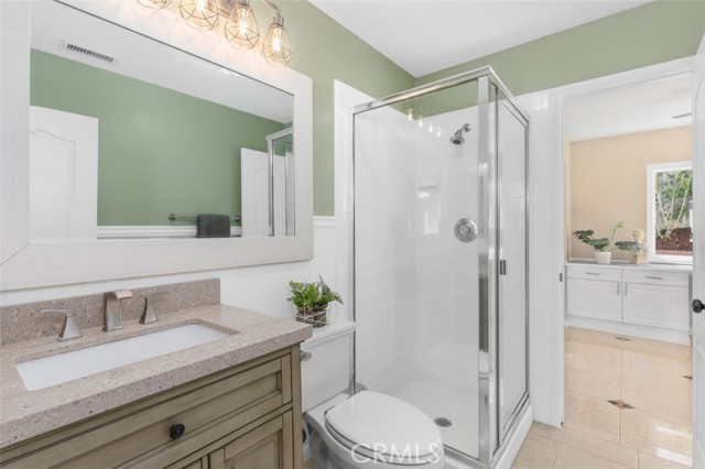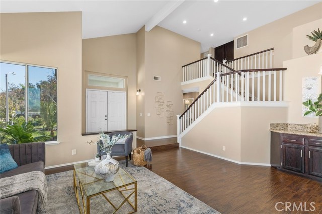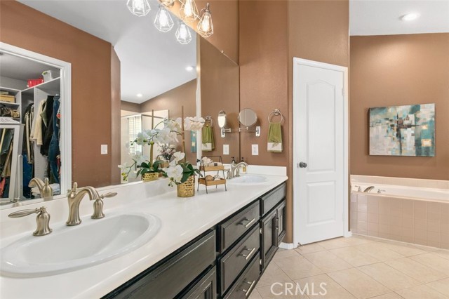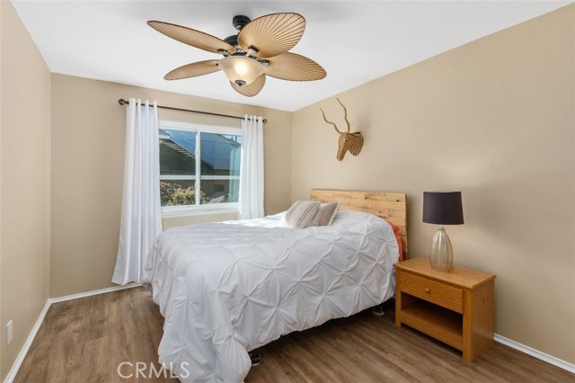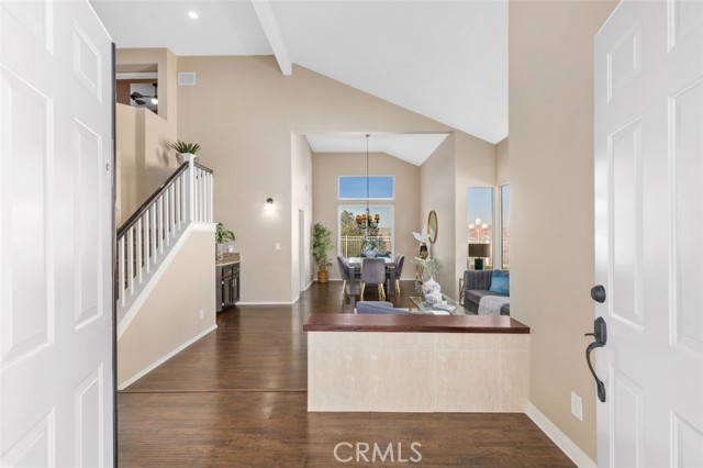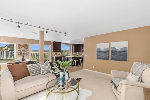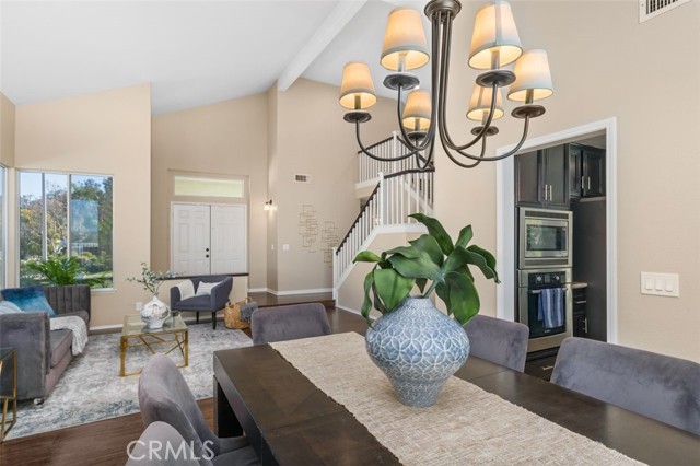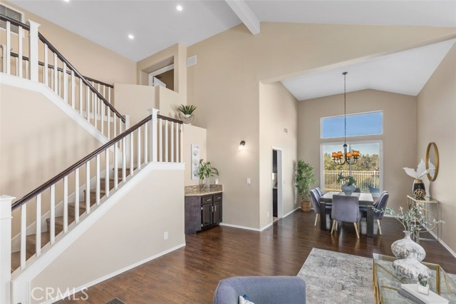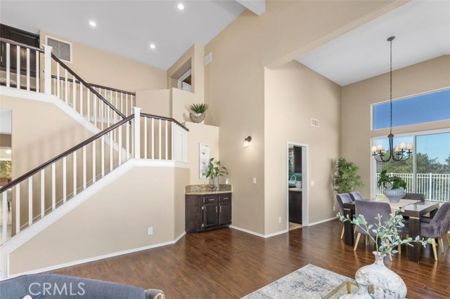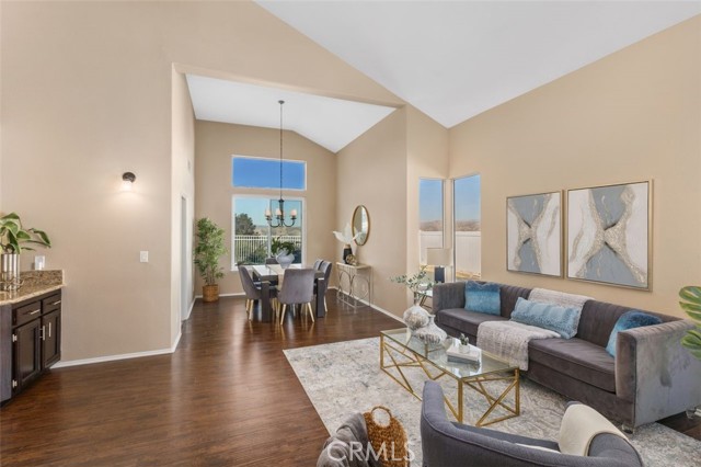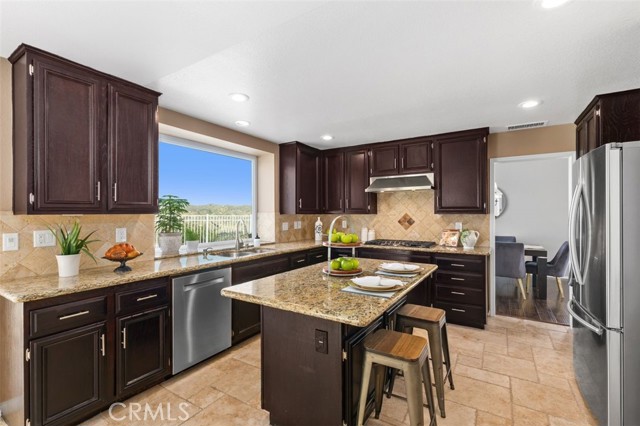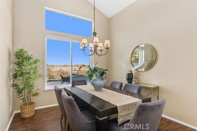 Searching for an ideal Corona home where you can simply move in, unpack, and relax? Beautifully maintained, this 4-bedroom, 3-bath haven is a must-see! A lush lawn with manicured landscaping lines the driveway leading to the covered porch. Past the double door entry, discover a 2,600-sq ft interior that's crafted to impress with soaring vaulted ceilings spanning the seamlessly connected entertaining areas. Chic neutral tones pair with a fusion of dark hardwood flooring and textured tiles to create a cozy atmosphere you'll love coming home to. Upgraded Anlin windows fill the living room with radiant sun while a stylish chandelier casts an elegant glow as you host intimate dinners in the dining area. Try out new recipes in the gourmet kitchen that equips you with a suite of stainless steel appliances, handsome cabinetry, a pantry, and granite countertops extending to the 2-seater island. What could make morning coffee better than pairing it with sensational views of the backyard from the adjacent breakfast nook? Glass sliders open to the patio for those who prefer to take their meals alfresco. A striking fireplace with a tile surround radiates warmth as you enjoy game and movie nights in the comfortable family room. Wake up within the restful proportions of your private retreats, all graced with ceiling fans and ample closets. A main-level bedroom with a full bath can be utilized as a home office or accommodations for overnight guests. Surpassing all, the primary suite showcases vaulted ceilings, a sitting area with picturesque vistas, a walk-in closet, and a luxe 5-piece ensuite with a double vanity, separate shower, and spa-like soaking tub. Outside, an oasis-inspired backyard is a picture-perfect backdrop for your weekend cookouts. Immerse yourself in the fresh air as you admire the stunning panorama of the mountains and the city beyond. Other notable upgrades are newer whole-house A/C and heating systems, pre-plumbing for a water softener, vinyl fencing on one side of the property, fresh exterior paint, an attached climate-controlled 3-car garage, new laminate flooring on the staircase, and Tesla solar panels to help save on utilities. As a premium perk, all this is set close to schools, shopping, dining, and entertainment options. Plus, its close proximity to 91 FWY, 71 Expressway, and 241 Toll Rd. allows you to easily commute to Yorba Linda and Orange County. Come for a tour before it's gone for good!