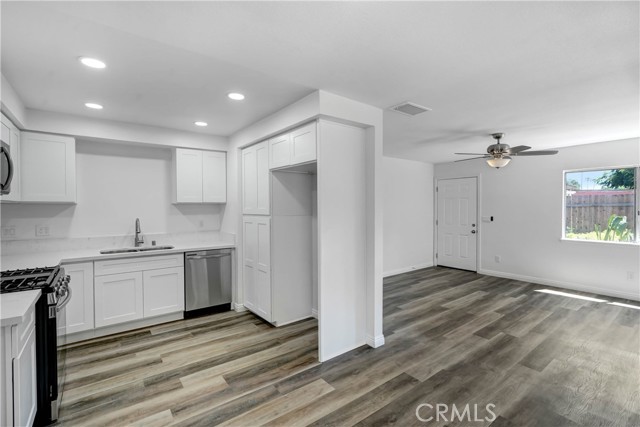 Welcome to this Newly Remodeled 3 Bedroom 2 Bath home in the Village Grove Community. This home has been newly transformed with brand new vinyl flooring, kitchen and bathroom cabinets and quartz counter tops and paint throughout! The home has also been upgraded with new sinks and faucets as well as new fans and lighting. The newly updated kitchen features all new stainless steel appliances and bright recessed lighting. The outside features a huge back and side yard with new artificial turf in the front. It has a 1 car garage with a wrought iron gate opening into a large carport. Come see this home for yourself, there is many more that has been added! Very close to shopping, parks and schools in the Corona Norco Unified School District. HOA includes access to pool, lake and tennis court!