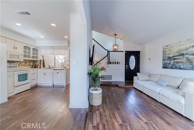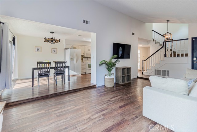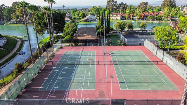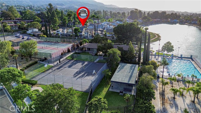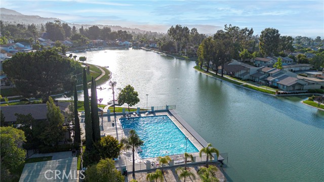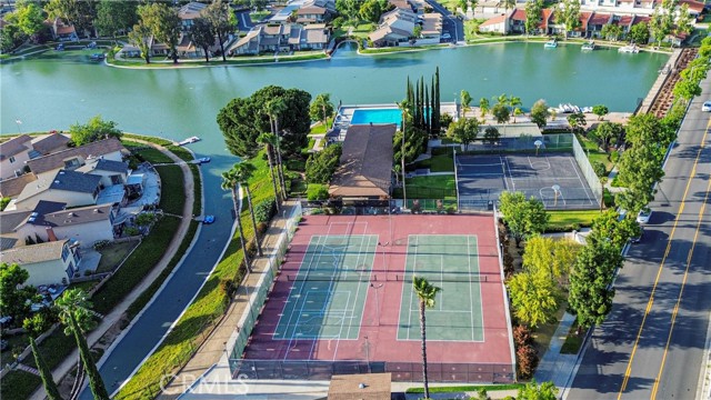 Rare Lake Front Living Home!! This home is in move in condition and situated in the Village Grove Community. Views and access to the lake, basketball courts, tennis courts, bbq and picnic areas and more. The home features 3 bedrooms and 2 bathrooms plus a bonus/office/den, with the Primary bedroom on the 1st floor with bathroom. Open Concept living with new paint and newer flooring and tall ceilings for a large feel. Tons of Kitchen Cabinet space and newer counter tops. Double paned windows through out including two large sliders that lead to the outdoor living space. New Luxury Vinyl Plank, Air Conditioning, Water Heater, Interior and Exterior Paint, Smart outlets, Ceiling Fans in bedrooms and New roof in 2019. Private gate access brings you thru a courtyard to your front door. Low maintenance design with areas for flowers, trees or plants. 2 car attached garage with additional driveway parking. Walking distance to grocery store, gym and more. Close to Freeways and low tax rate area with only 65 per month HOA. Come make this one yours!