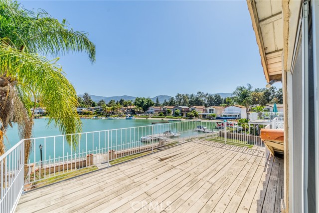 Location, Location, Location!! Lake front home!! In the Heart of Corona. Have you own private dock!! The Private Courtyard leads to Glass Front door and step up brick entry area. This home was originally built as a 4 bedroom, (with a downstairs bedroom). Owner removed the wall to open up the room to a Large Great Room with Fireplace. (Popular modification in this area). Two sliding glass doors lead to the covered patio and private back yard. If you need a 4th bedroom, the wall can be put back up rather easily, the closet is still in the original bedroom area. This home features a Galley style Kitchen, with an eat in kitchen area, and family room area. 3 bedrooms upstairs, with 2 full baths. Master bedroom has a viewing deck and a million dollar view of Lake and Cleaveland National Forest!!! Miles of walking trails, (Skyline Trails), just a mile away. This home is being sold as is at a discounted price. Recent comp sold, same model, just a few doors down, just closed escrow for $840,000. remodeled. Buy this one and fix it yourself to be the home of your dreams!!! Zero Lot line, newer central heat and air-conditioning. Low HOA only $65.00 includes use of common pool and tennis courts. No mello roos.