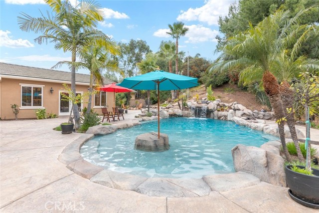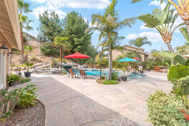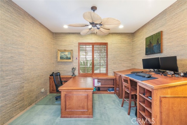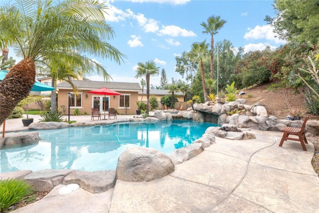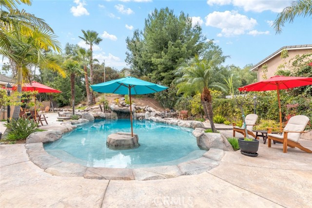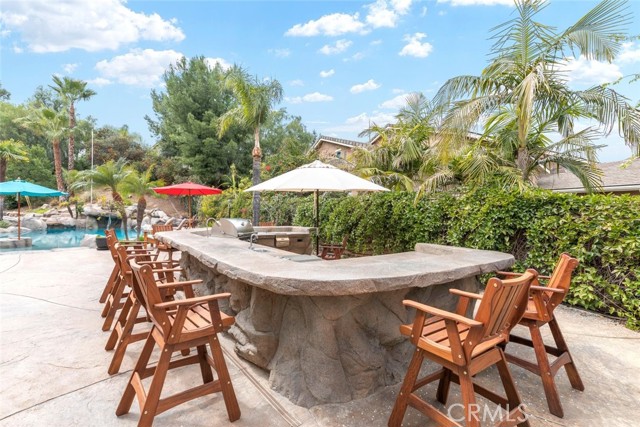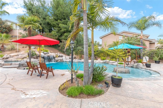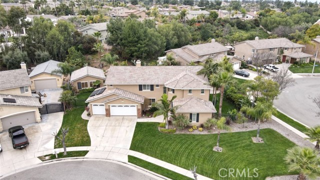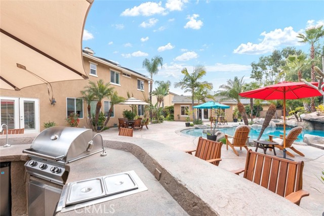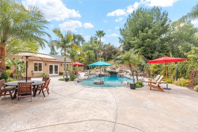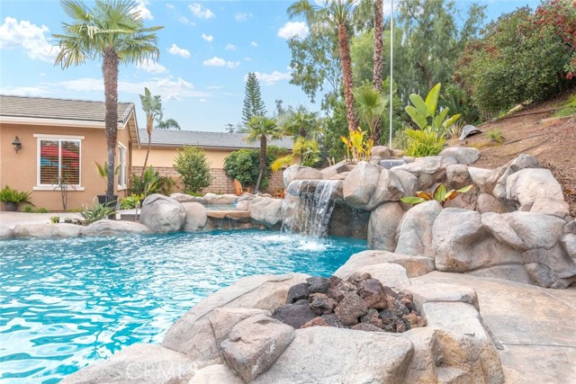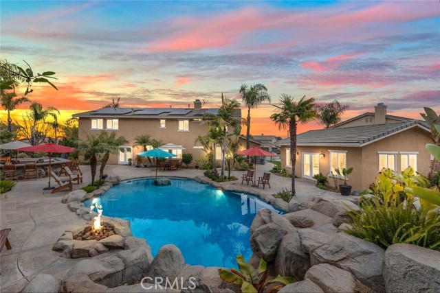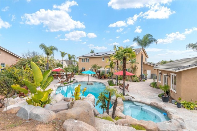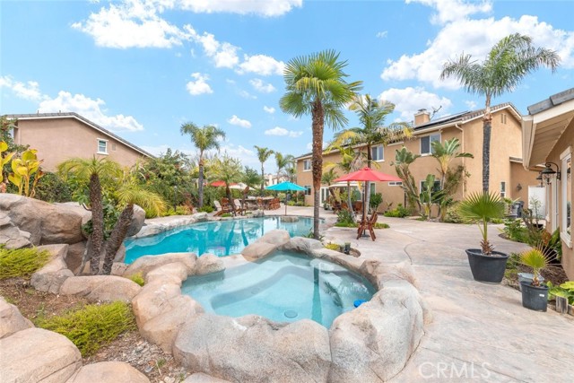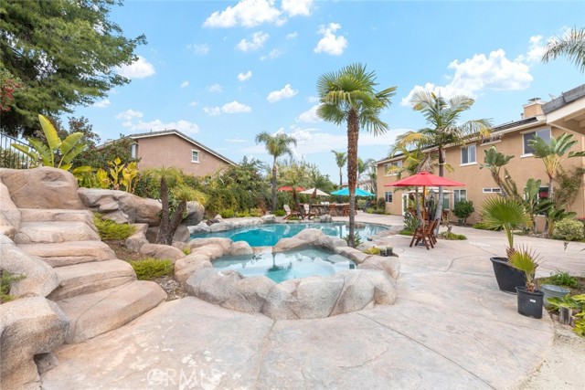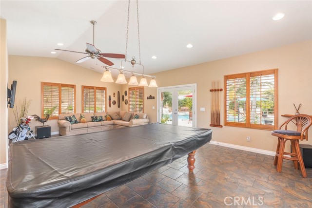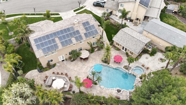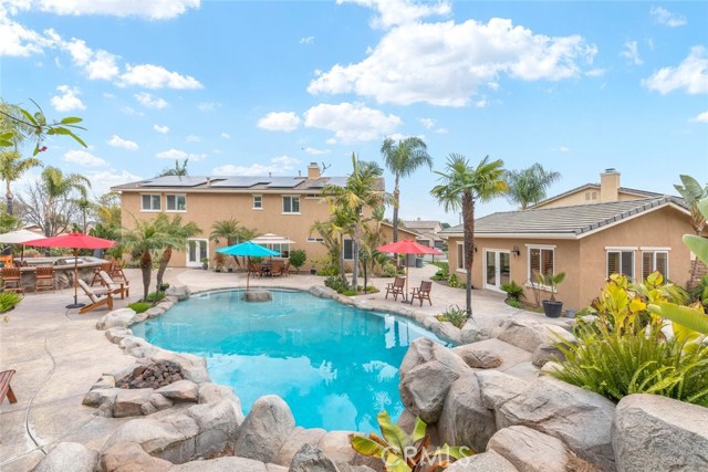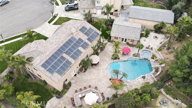 Welcome to this exquisite 6 bedroom, 4.5 bathroom pool home, with a custom built pool house, in a tranquil cul-de-sac, with a spacious 4,470 square feet of luxurious living space on a generous 20,473 square foot lot. As you step inside, you are greeted by soaring cathedral ceilings and an elegant tile entryway. The expansive sitting room is bathed in natural light while the adjacent formal dining room is perfect for hosting memorable gatherings. The downstairs features a convenient bedroom with direct access to the front, accompanied by an attached full bath. A gourmet's delight, the large kitchen is equipped with stainless steel Wolf appliances, a Sub-Zero built-in refrigerator, convection and double ovens, a pantry, and a stainless steel sink overlooking the picturesque backyard. The adjacent family room is an entertainer's dream, with a cozy fireplace, built-in shelving, and a coffee or wine bar, while a built-in office with double doors provides a quiet workspace. A second downstairs bedroom with a full bathroom nearby offers versatility and convenience. Upstairs, discover a built-in office and the expansive master bedroom retreat featuring a fireplace, 2 walk-in closets, and an upgraded ensuite with a luxurious upgraded shower and countertops. Three additional spacious bedrooms share a full bath with a double vanity, while plantation shutters adorn the windows throughout. Step outside to your own private oasis, where hardscape surrounds the backyard featuring a 52-foot barbecue station with a sink and refrigerator, over 25 palm trees, a tranquil 8' 6" rock pool with a waterfall, 2 lush grass side yard, and 2 inviting fire pits. A pool house offers additional entertainment space with a pool table, microwave, sink, and powder room. This home boasts modern amenities including updated plumbing, a contemporary recirculation pump, house re-piped in 2021, new water heater, new plumbing fixtures, security system, newer pool pump, and Bose outdoor surround sound. With garage storage solutions, fresh exterior paint, and recent pool replastering, this property offers the epitome of luxury living in a secluded yet convenient location. This home features 45 solar panels and comes with a 20-year pre-paid solar program, paid upfront. Installed 7 years ago, the new owner will enjoy 13 years of virtually free electricity, saving over $20,000. No HOA fees. Located in a phenomenal school district. Close to 15, 91 freeways and Foothill Expressway.