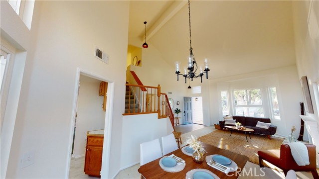 This 2,131 sqft. 4 bedroom 2.5 bath two story home is in a highly desirable area of Corona. You'll love the open and bright feeling as you enter into a spacious living room with vaulted ceilings, a fireplace and an adjacent formal dining room with direct access to the kitchen. The kitchen has a walk-in pantry and has an open concept overlooking the large family room. There is a half bathroom located on the first floor + a full size laundry room with gas and electric hook ups and a closet for extra storage. There is also a large 2 car garage with direct access to the home. All the bedrooms are located upstairs. The master suite has a double door entry, a walk-in closet + an additional wall closet and a large in-suite bathroom with dual sinks and a shower/tub combo. The three additional upstairs bedrooms share a full bath with dual sink and shower/tub combo. The spacious private backyard is perfect for entertaining, gardening, pets, and kids. Some of the upgrades include a soft water system & the AC + ducting was replaced 6 years ago. This home has No HOA, No mello roos tax and is located near schools, parks, shopping and easy freeway access to the 91 and 15. Check out the virtual tour https://my.matterport.com/show/?m=QCiBTaxJr5X