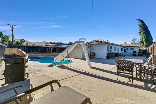 Nestled on a tranquil street in the flourishing city of Corona! This charming residence offers a perfect blend of comfort and potential. Boasting 3 bedrooms and 2 bathrooms, this single-story home includes a a once-enclosed patio transformed into a versatile 4th bedroom. This bonus space can serve as an office for remote work, a workout room for fitness enthusiasts, a playroom for the kids, or any other creative purpose you may envision. While the home requires a bit of tender loving care (TLC), the possibilities are endless. Channel your inner decorator and turn this canvas into a masterpiece that reflects your personal style. The open layout of the living spaces invites natural light, creating a warm and inviting atmosphere for family gatherings or entertaining friends. The backyard is complete with a sparkling pool and a slide that promises endless hours of fun and relaxation. Imagine hosting summer barbecues, pool parties, or simply unwinding after a long day in your private retreat. Conveniently located in a growing city, this home provides easy access to major freeways, local amenities, schools, parks, and shopping centers.