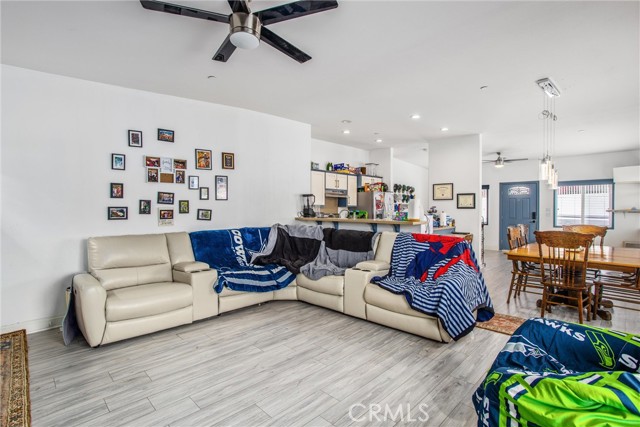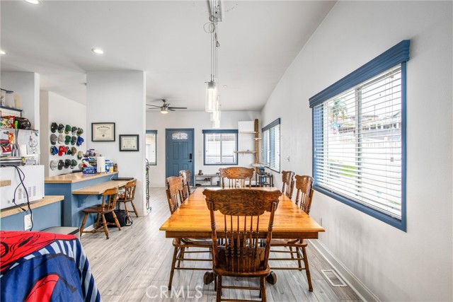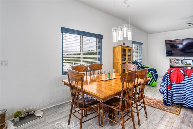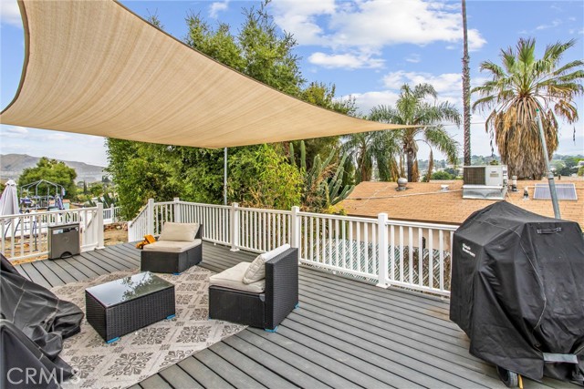 Peaceful, private turnkey corner lot home on the tranquil El Cerrito hillside, Corona, with views and room for RV/toys! An airy, bright greatroom features voluminous natural light illuminating the vast living spaces and multiple options for lounging and dining areas, perfect for gathering. Here, you will notice the elevated features and touches consistent throughout, including soaring 10-foot ceilings, upgraded fans/fixtures and recessed lighting, seamless countertops and sinks, and premium wood-look vinyl laminate flooring. The central kitchen with ample counter space includes high top breakfast bar, an island with storage as well as additional seating, and contemporary stainless steel appliances. A dining area features upgraded pendant fixtures, and on either end lies opportunities for a living room, conversation seating, or office space. A private hallway leads to all other rooms; at the end, the primary bedroom houses a walk-in closet as well as en suite bath with soaking tub, separate shower enclosure, and his-and-her sinks. The convenient indoor laundry room features storage, a valet rod, a sink, and direct access to the two-car garage. Outside, entertain with a beautifully manicured grass lawn, kids play area, and a breezy, brand new deck with shade sail cover while enjoying the city and hillside views, all behind a 9-foot vinyl privacy fence with automatic, Bluetooth-controlled gate! Room on an elongated driveway or beside the house for your biggest RV and toys, and an additional gate with gravel parking runs behind the home from the adjacent street. OWNED water softener system. Easy access to amenities, award winning schools, the 15/91 freeways and essential shortcuts out of town, and outdoor living!